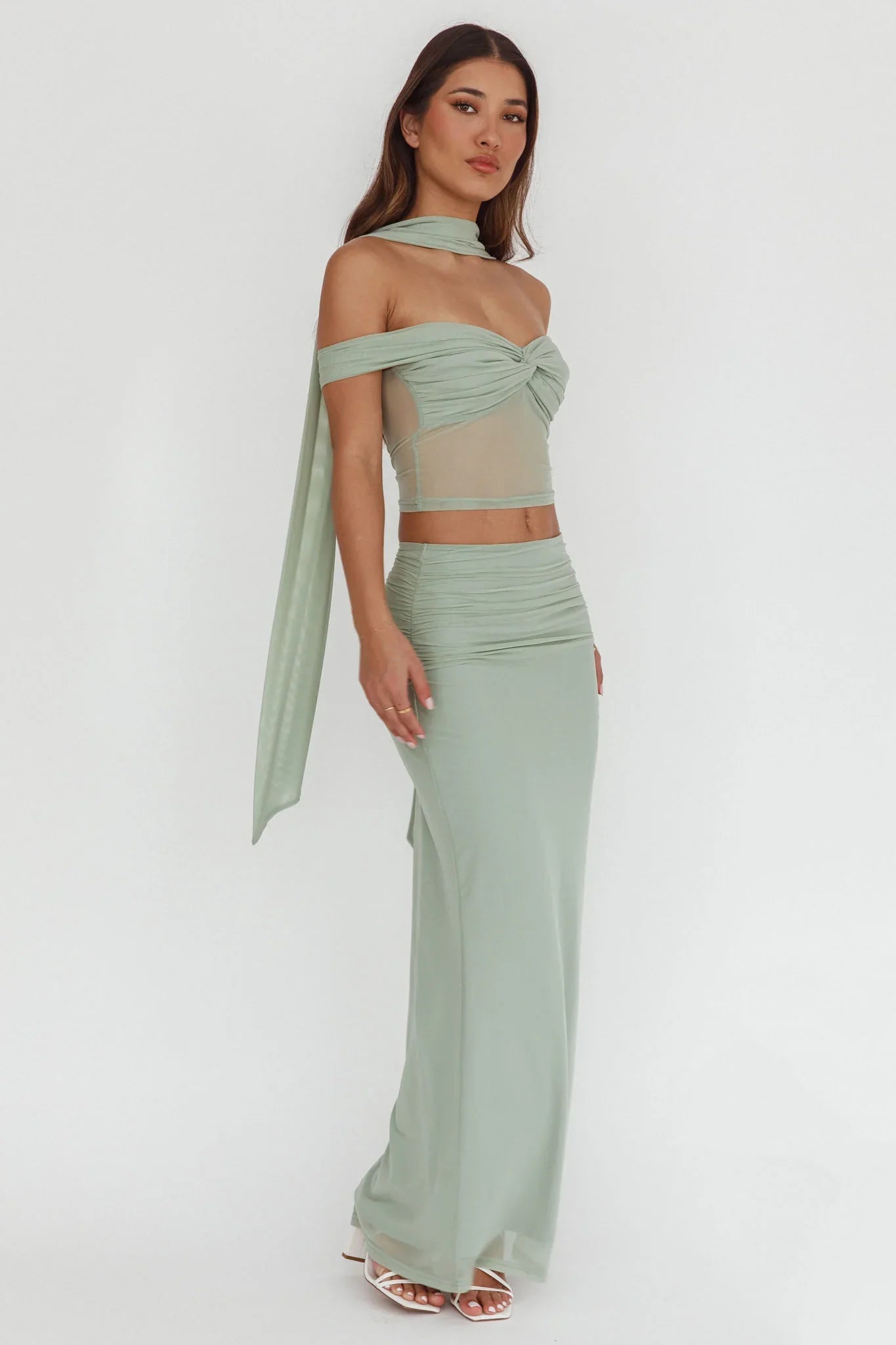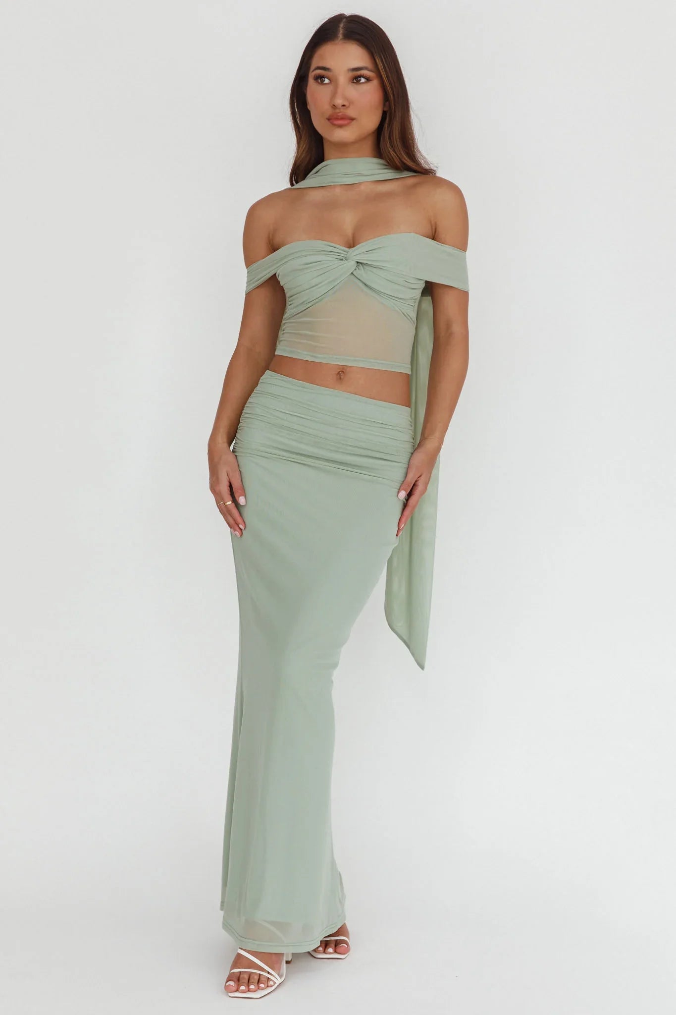 Strut in style in our chic All The Lights midi skirt. It features ruching detail and a mesh overlay and is just what you need for sunset cocktails with your girls. Team it with its matching crop top and heels for a look that will turn heads.