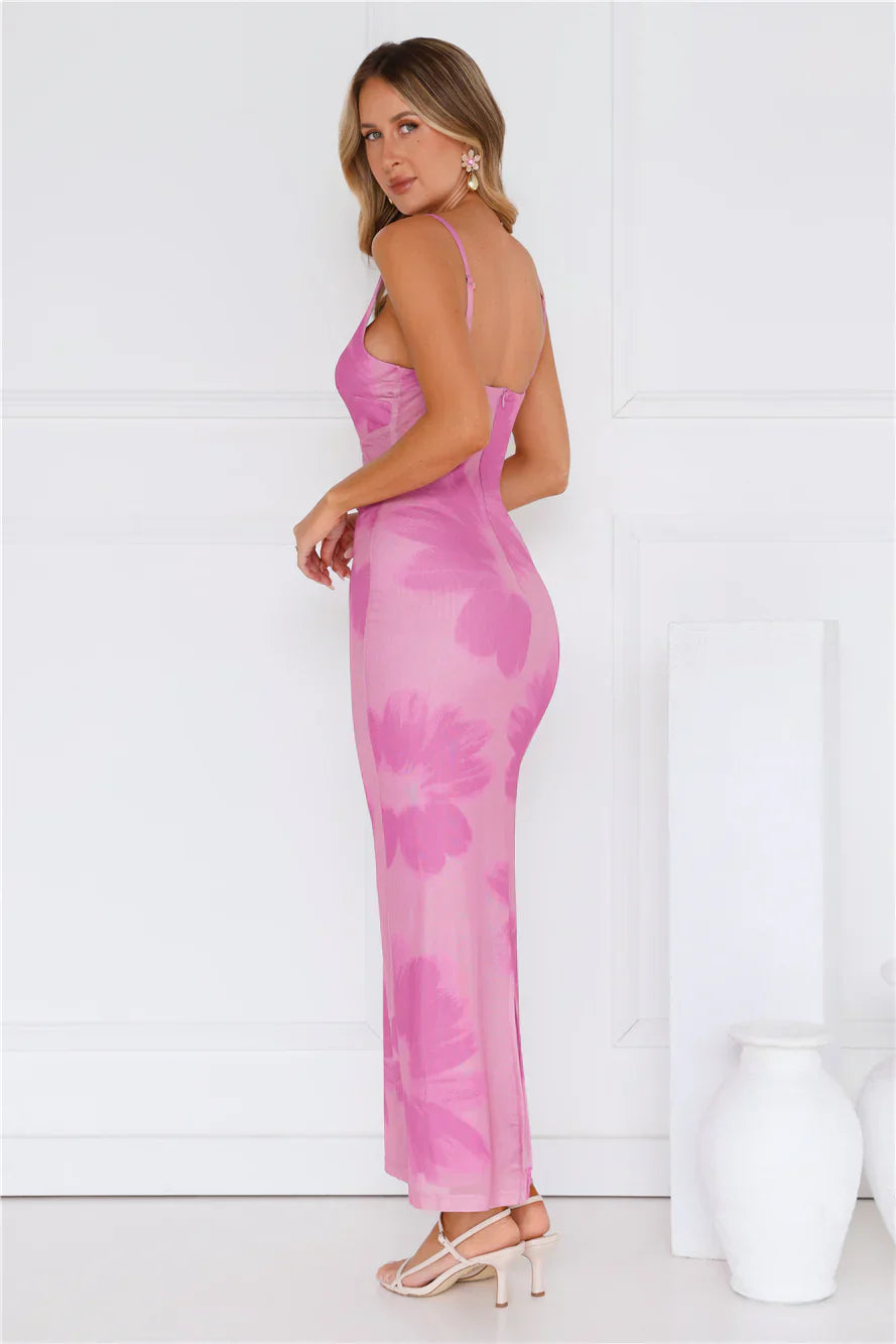 Bring the chic vibes in the Amber Splendour Mesh Maxi Dress. Featuring a bodycon silhouette and a lovely printed design. Style with heels for a party and impress.