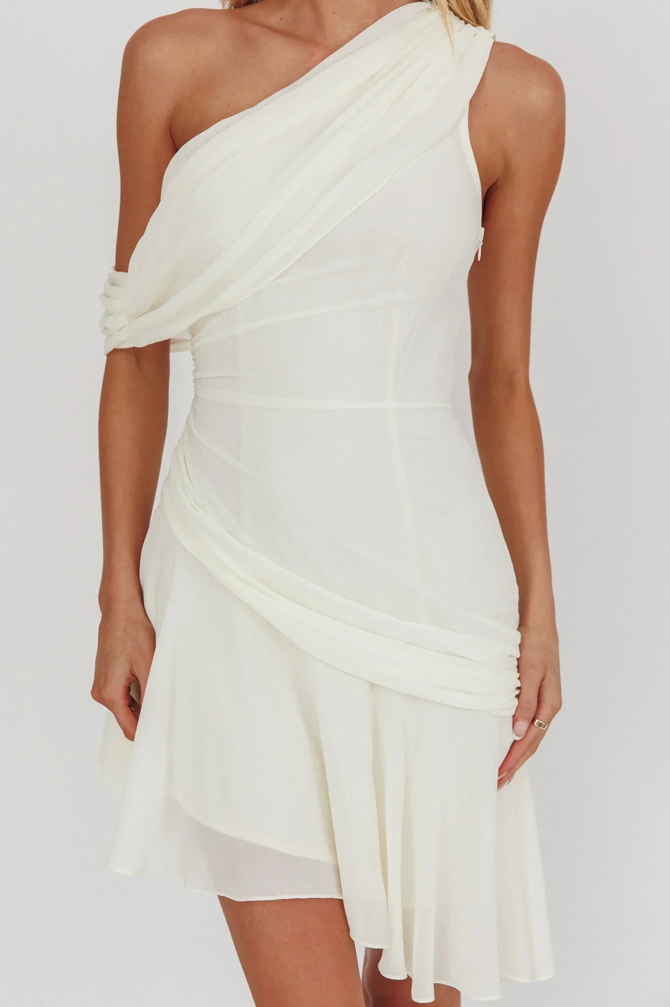 You will steal the spotlight in our gorgeous Anaisa mini dress. It features a draped, one-shoulder neckline and flowy layers that will have you feeling like a goddess. It's perfect for a bridal shower or birthday celebration teamed with strappy, nude heels and a purse for a head-turning look.