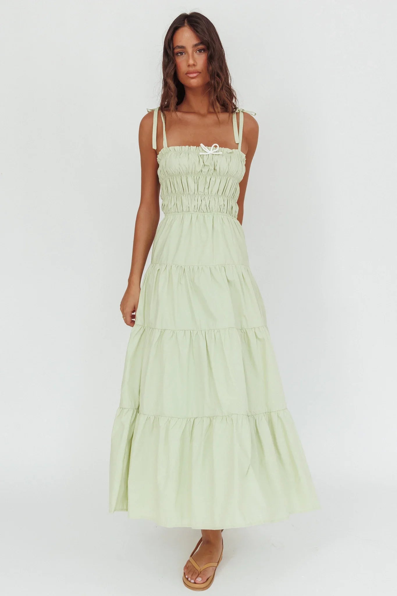 Float through your weekend in our breezy Anderson maxi dress. It features an elasticated, smocked bodice and is perfect for coffee dates with your girls teamed with sandals and a tote for an It Girl look.