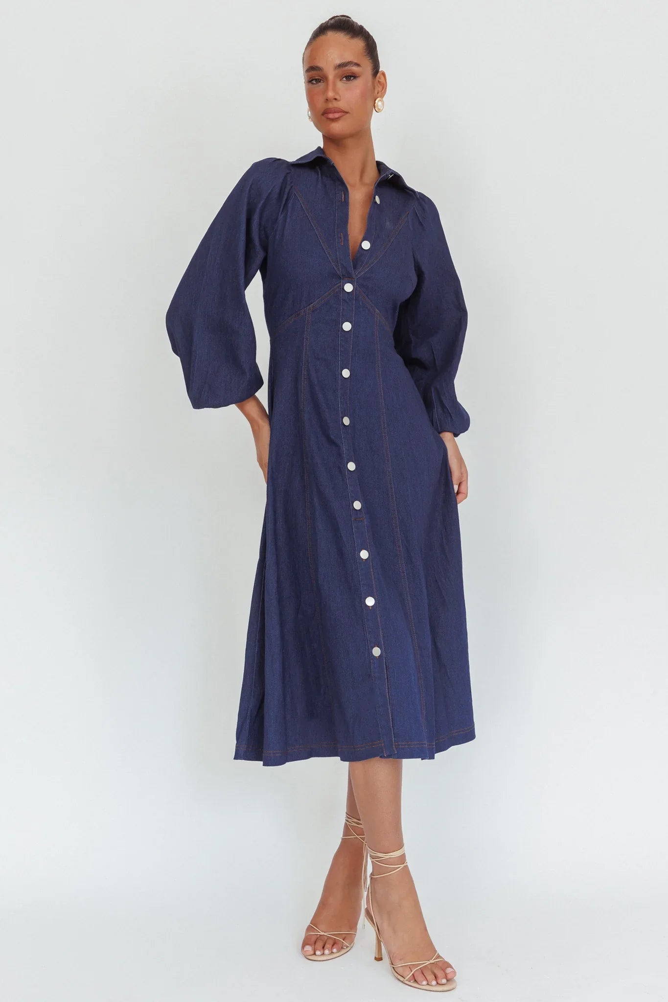 Make an entrance in our pretty Ania dress. It features long, balloon sleeves and button closures in the neckline. Wear it to Sunday lunch with your girls teamed with western boots for an on-trend look.
