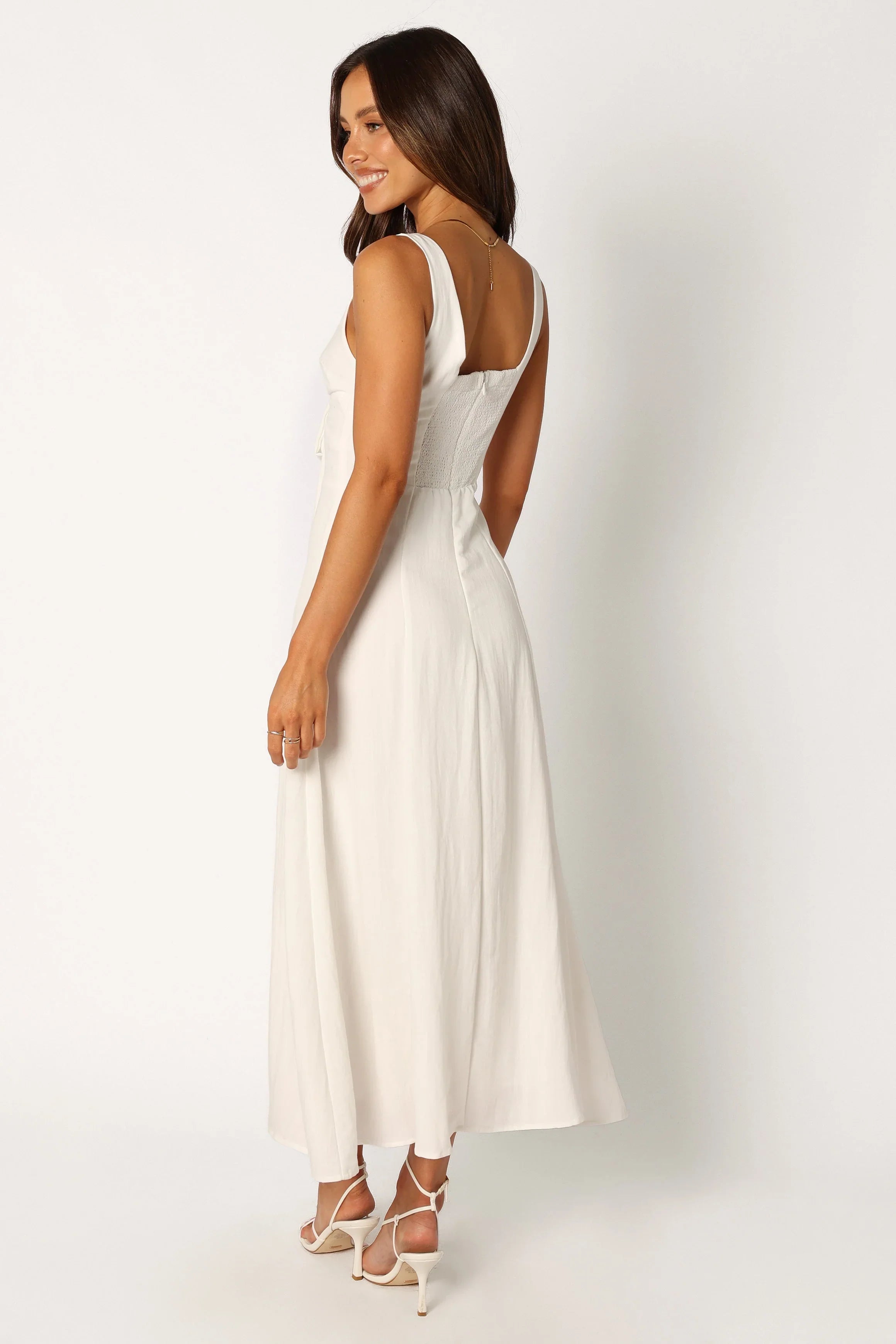 DETAILS Make an entrance in our beautiful Archer Midi Dress! Paired with a v neckline, this dress style highlights the collarbone and elongates the neck for a chic and edgy appeal. There are endless ways to make your own statement.