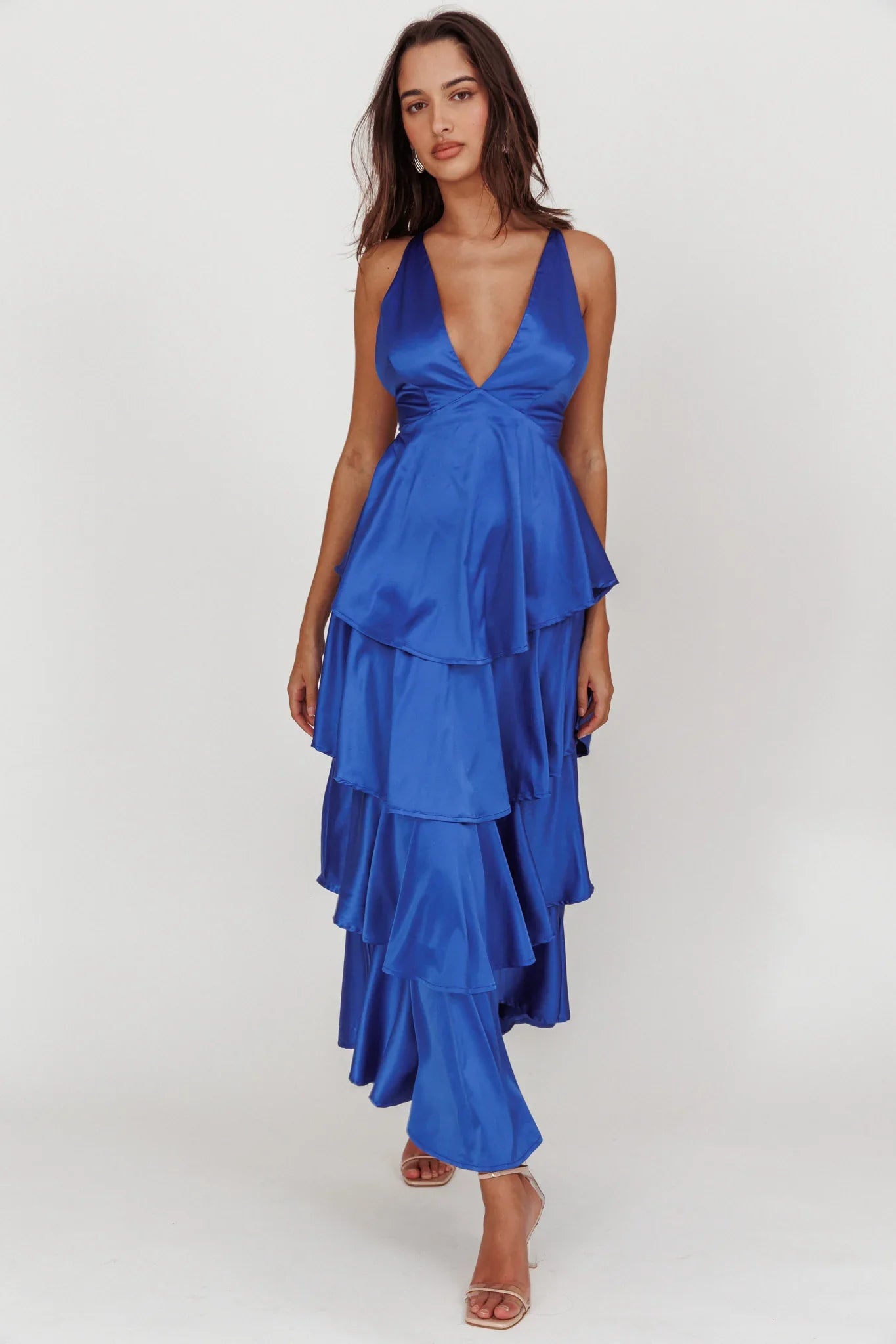 You will be flooded with compliments in our gorgeous Auguste midi dress. Featuring a plunging neckline and tiered frill detail. Wear it to a wedding or a special birthday celebration. Team it with nude heels and a clutch for a look that'll sweep them off their feet.