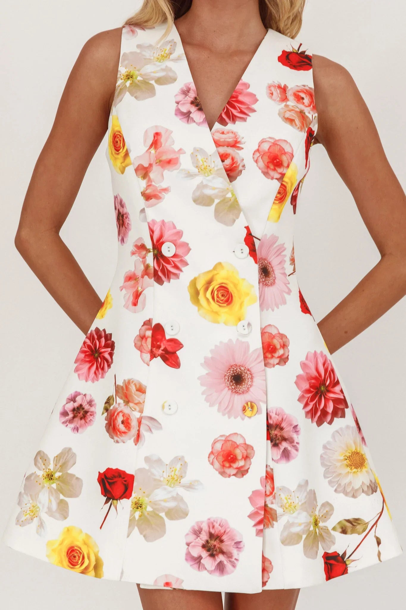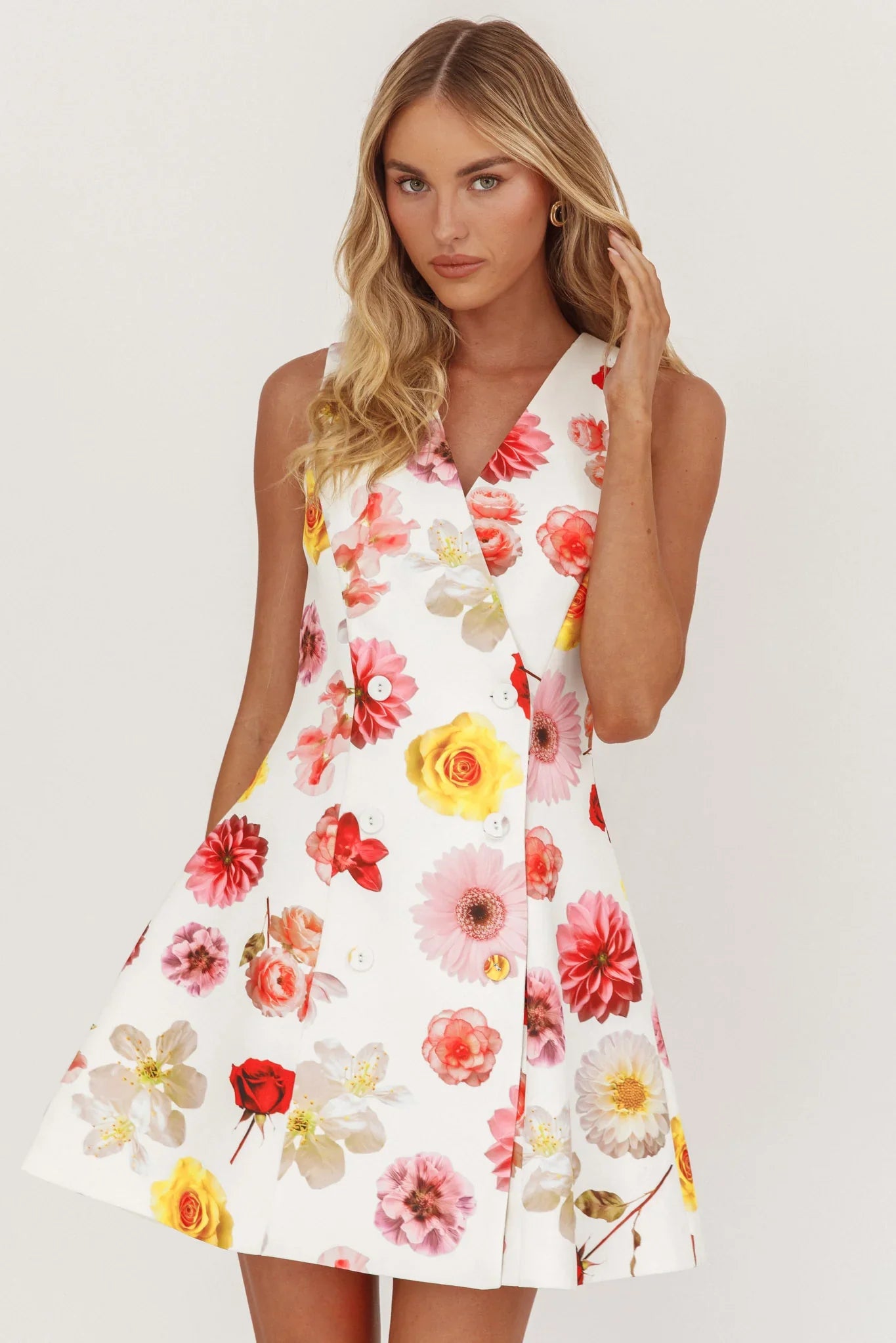 Make an entrance in our Austra mini dress. It's giving style icon with its double-breasted button front and A-line silhouette. Perfect for Friday night cocktails with your girlies teamed with strappy heels and a saddle bag for an It Girl look.