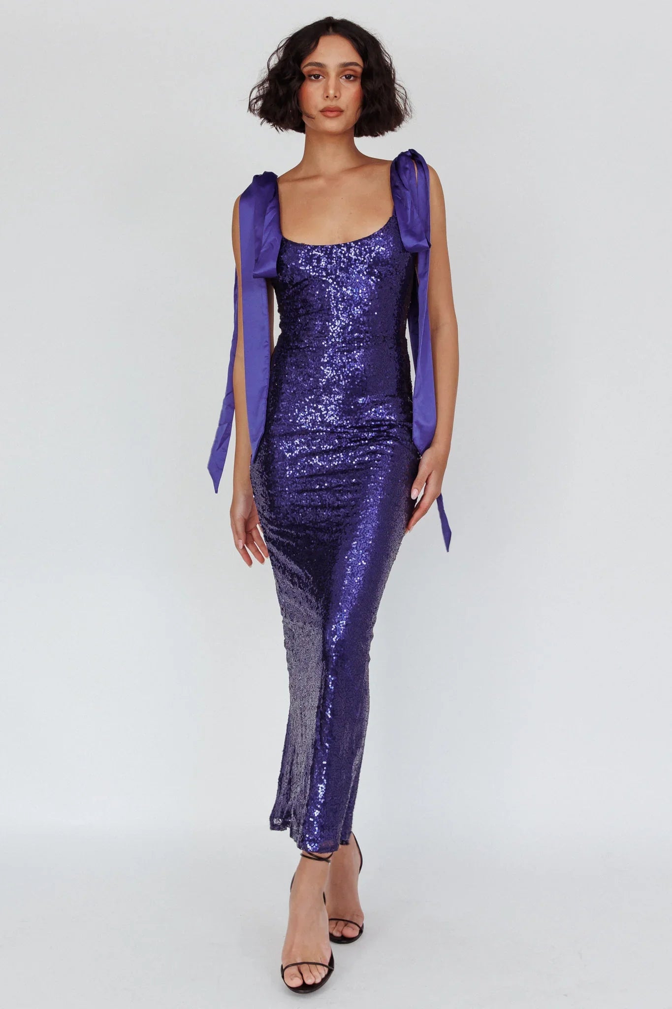 Light up the room in our stunning Birthday Wish maxi dress. Featuring tied shoulders and sequins throughout. It's perfect for a special event or birthday celebration. Team it with silver, tie-up heels and a clutch for an unforgettable look.