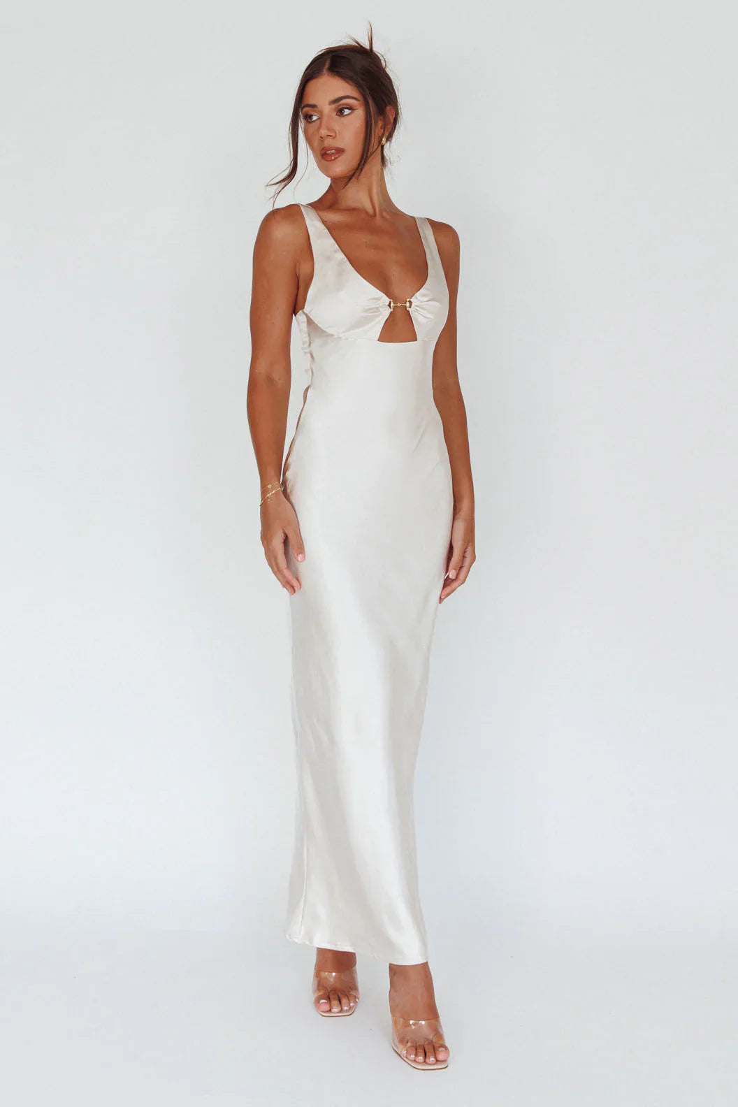 You will turn heads in our stunning Blushing Beauty maxi dress. Featuring a gold horsebit link decoration in the bust, it's perfect for a bridal shower or birthday soiree. Team it with diamante heels and a clutch for an unforgettable look.