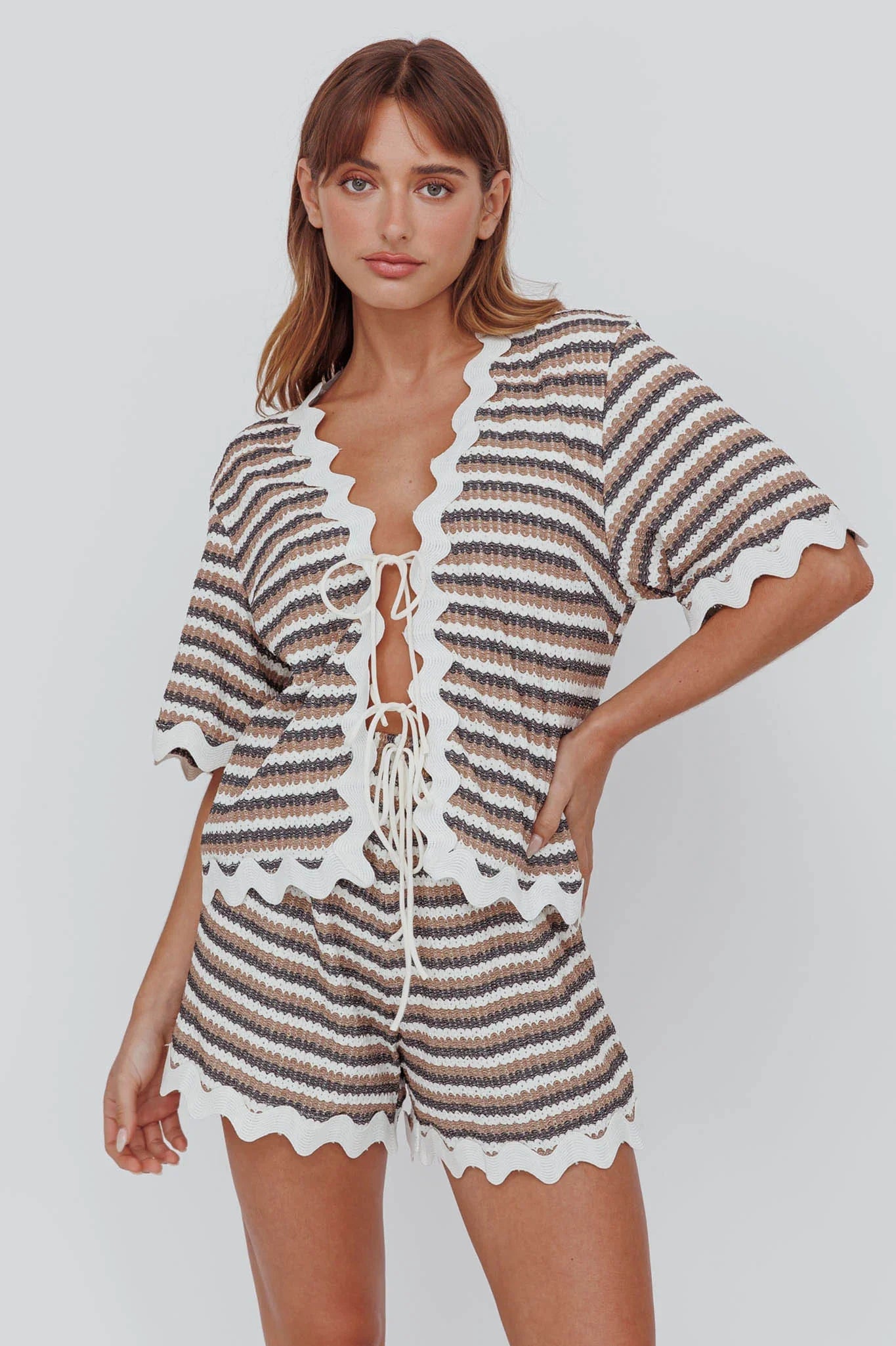 Breeze through your day in our chic Breakaway top. Featuring a pretty, striped design and squiggle trim, it's perfect for lazy weekends strolling your fave flea markets, coffee in hand. Team it with its matching shorts and sandals for a look we are loving.