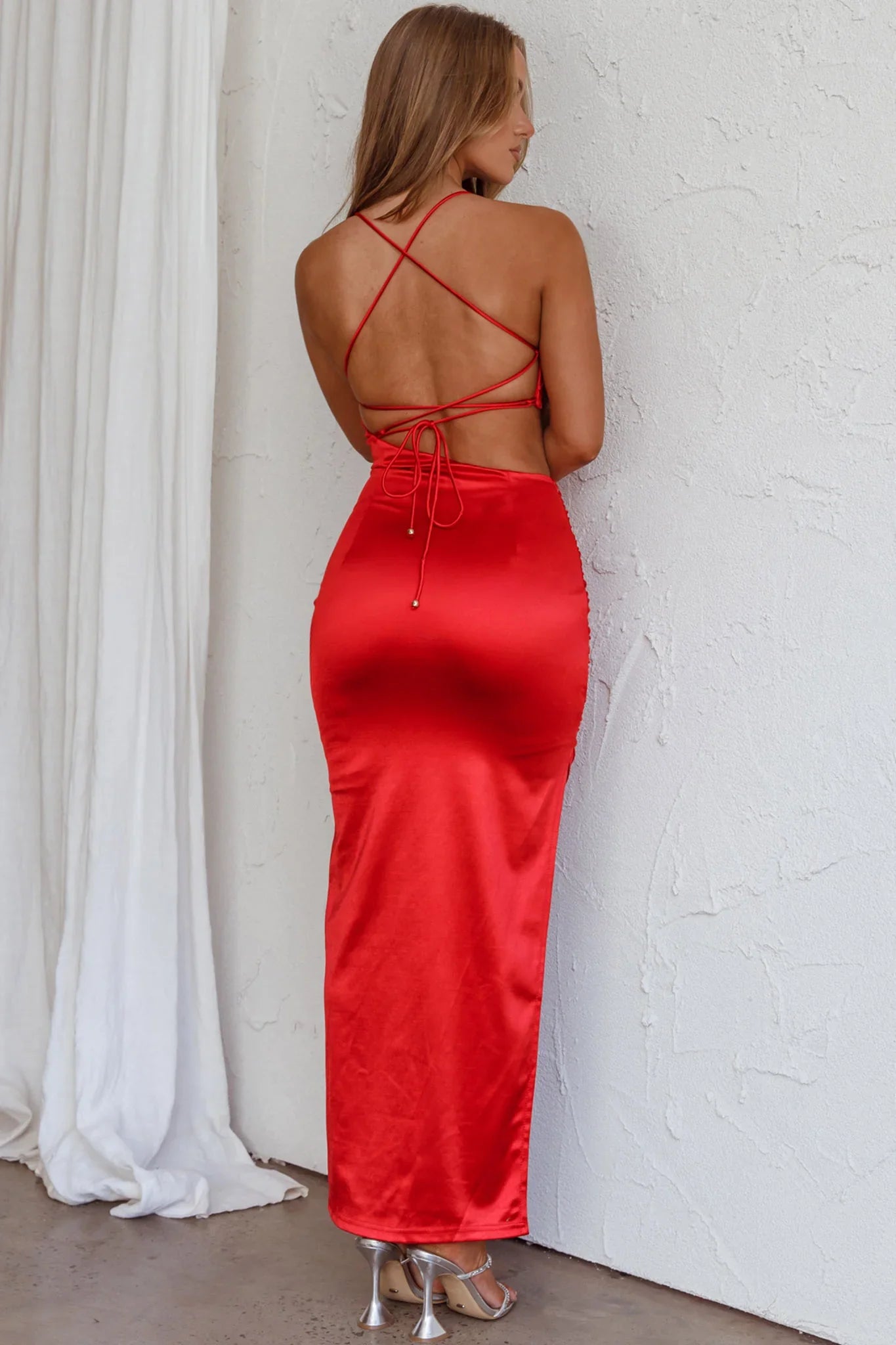 Turn heads in our super hot Can't Hardly Wait midi dress. Featuring a cut-out waist, tie-up back and a sexy thigh split. It's perfect for a birthday celebration or a special event! Pair it with metallic, tie-up heels and a small purse for an unforgettable look.