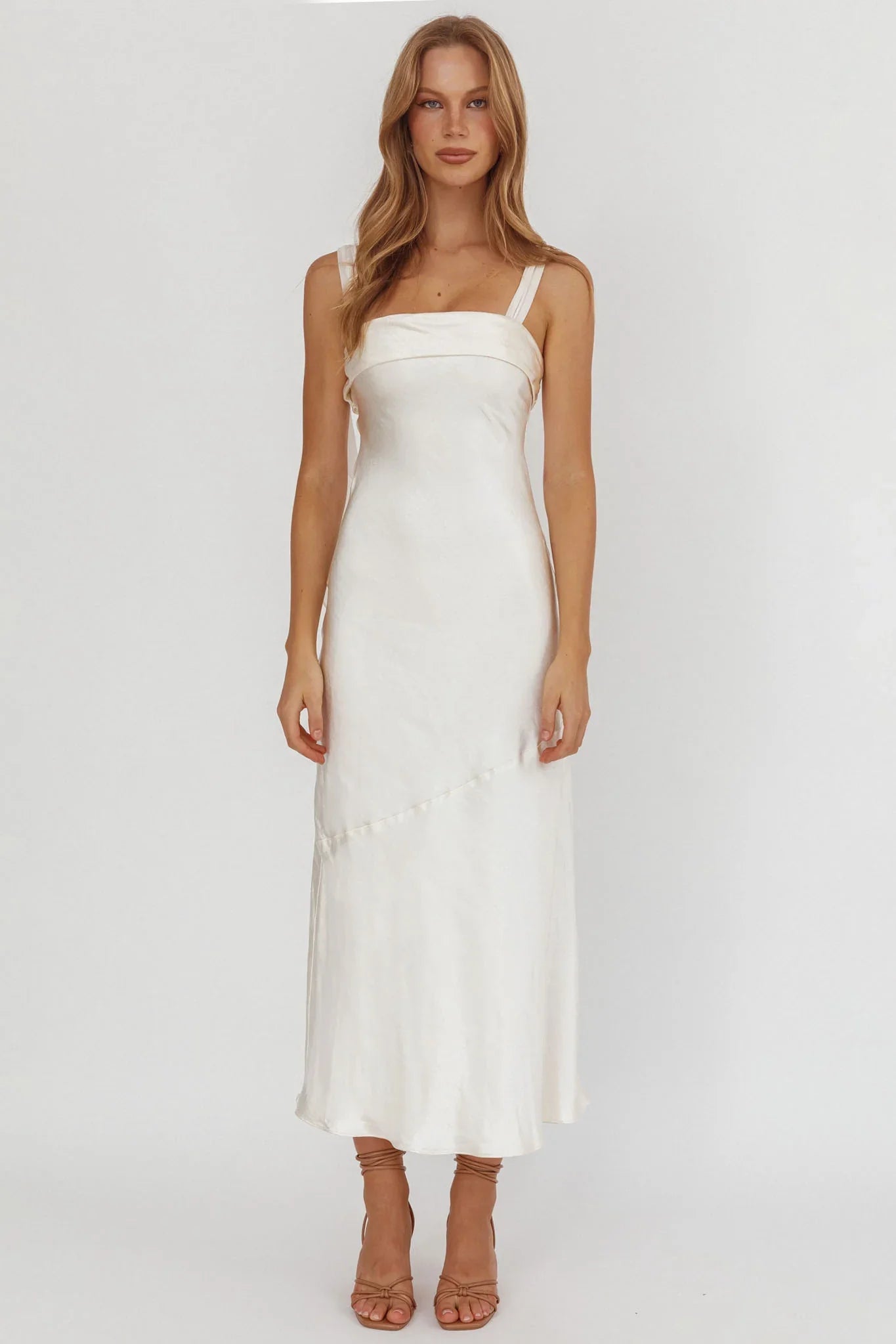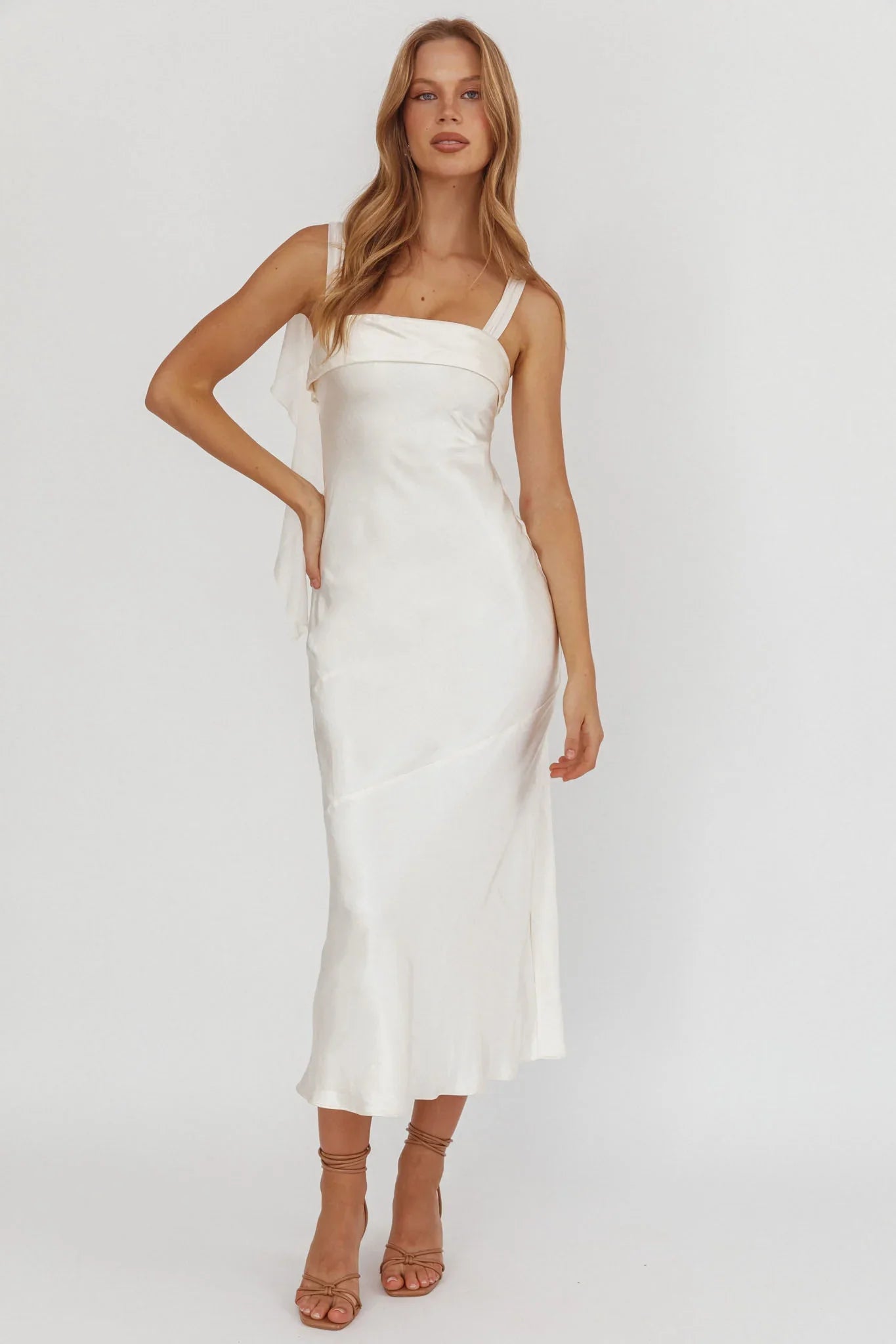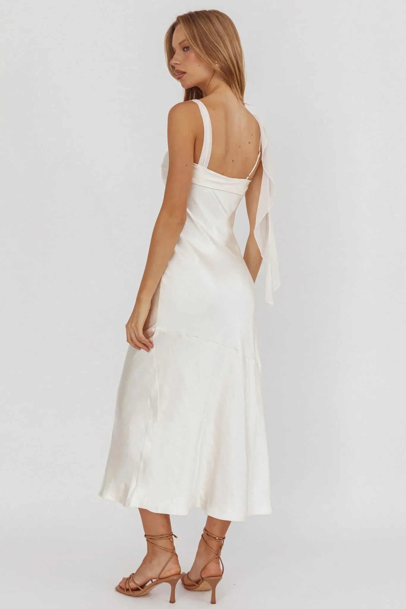 Make them stop and stare in our gorgeous Carmel midi dress. It features a shoulder sash accent and soft satin fabric. Wear it to a bridal shower or special event teamed with heels and a your favorite jewellery for the It Girl look.