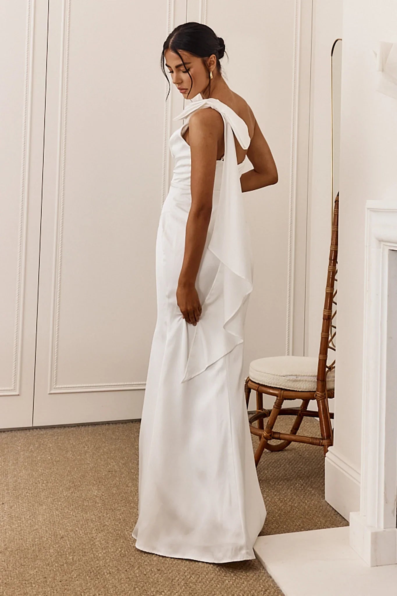 Make an entrance in our gorgeous Carriann maxi dress. Featuring a one-shoulder style with bow. It's perfect for prom or a special occasion. Team it with strappy white heels and a satin clutch for a look that'll turn heads.