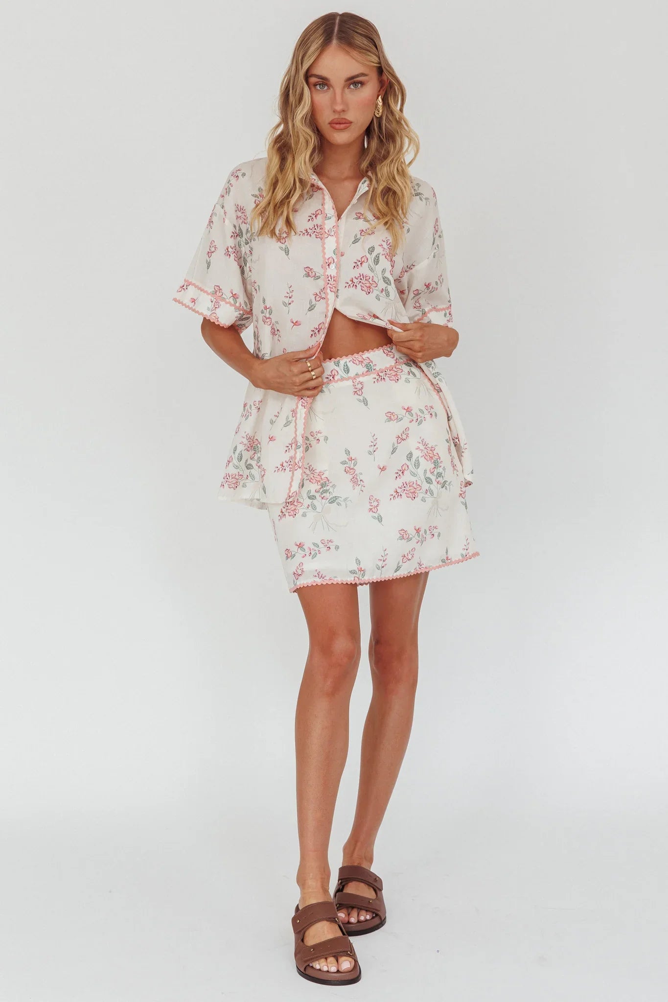 Make an entrance in our pretty Catherina mini skirt. It features a feminine floral print and ric-rac trim and is just what you need for a picnic date with your besties. Team it with its matching shirt and sandals for a dreamy look.