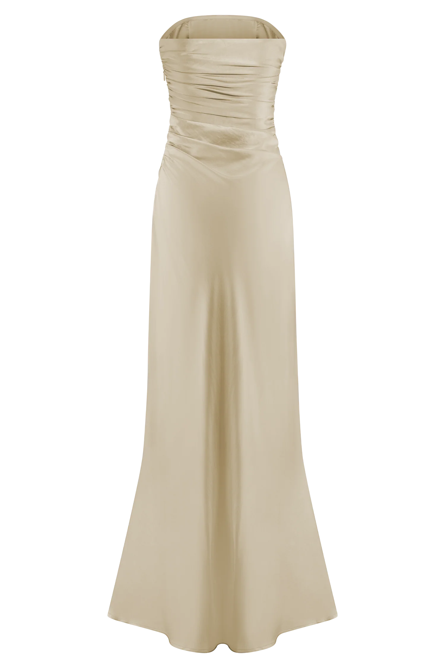 The CEDAR Strapless Satin Maxi Dress is the perfect blend of timeless grace and modern sophistication. Designed with a sleek strapless neckline, this gown drapes beautifully with side seam gathering that enhances the silhouette. The flowing A-line skirt creates a soft, ethereal movement, while the maxi length exudes understated luxury. Fully lined for a smooth fit and finished with a discreet side zip for seamless wear, this dress is ideal for evening events, weddings, and special occasions that call for effortless refinement.