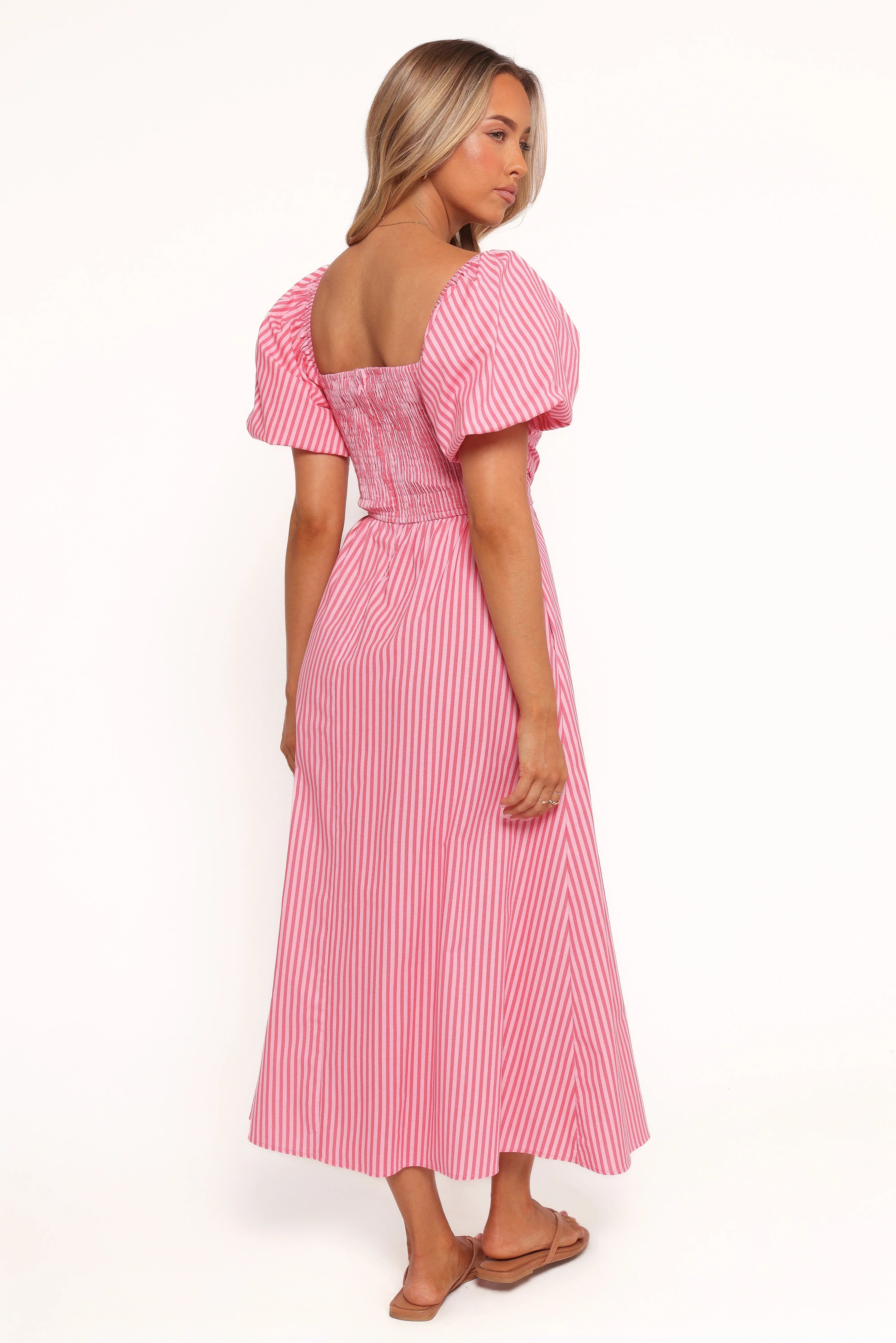 DETAILS Step out in timeless style with the Clo Puff Sleeve Dress, a perfect blend of charm and comfort. Falling gracefully to a midi length, the dress features a trendy square neckline and short puff sleeves with gentle elasticised cuffs, offering a modern take on a classic silhouette.