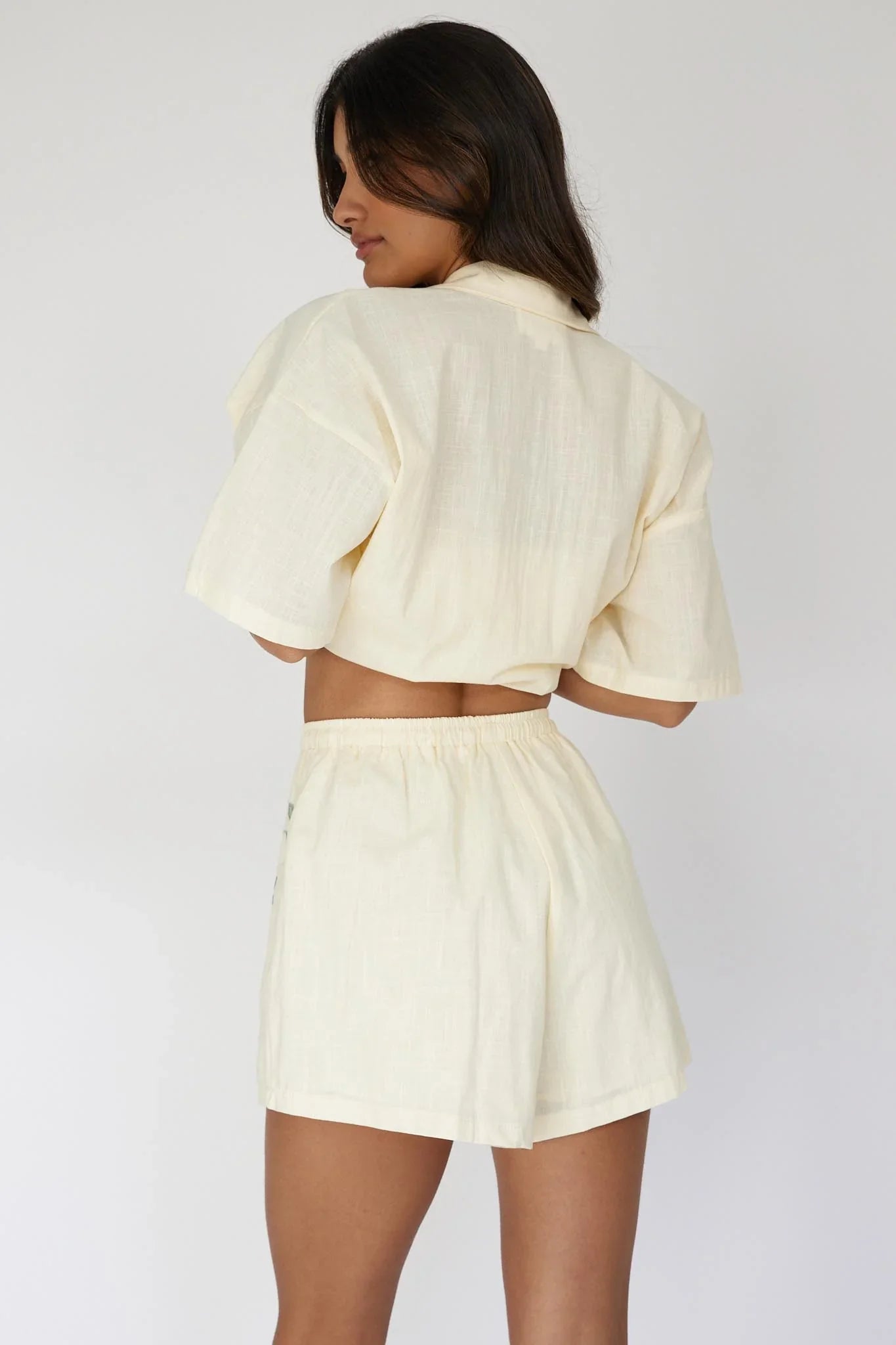 You'll feel like packing your bags and escaping for a Euro Summer in our super cute Ciao Ciao shorts. Featuring a drawstring waist and embroidery detail, it's perfect for weekend brunch with your besties or running errands in style. Team them with their matching shirt and sandals for a chic look we are loving.