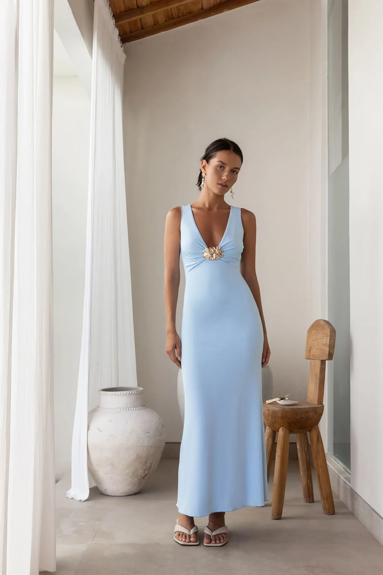 Step into timeless elegance with the Coastal Caprice Maxi Dress. Pair with gold accessories to highlight the dress's statement detail, and let the Midnight Magnolia bring effortless chic to any occasion.