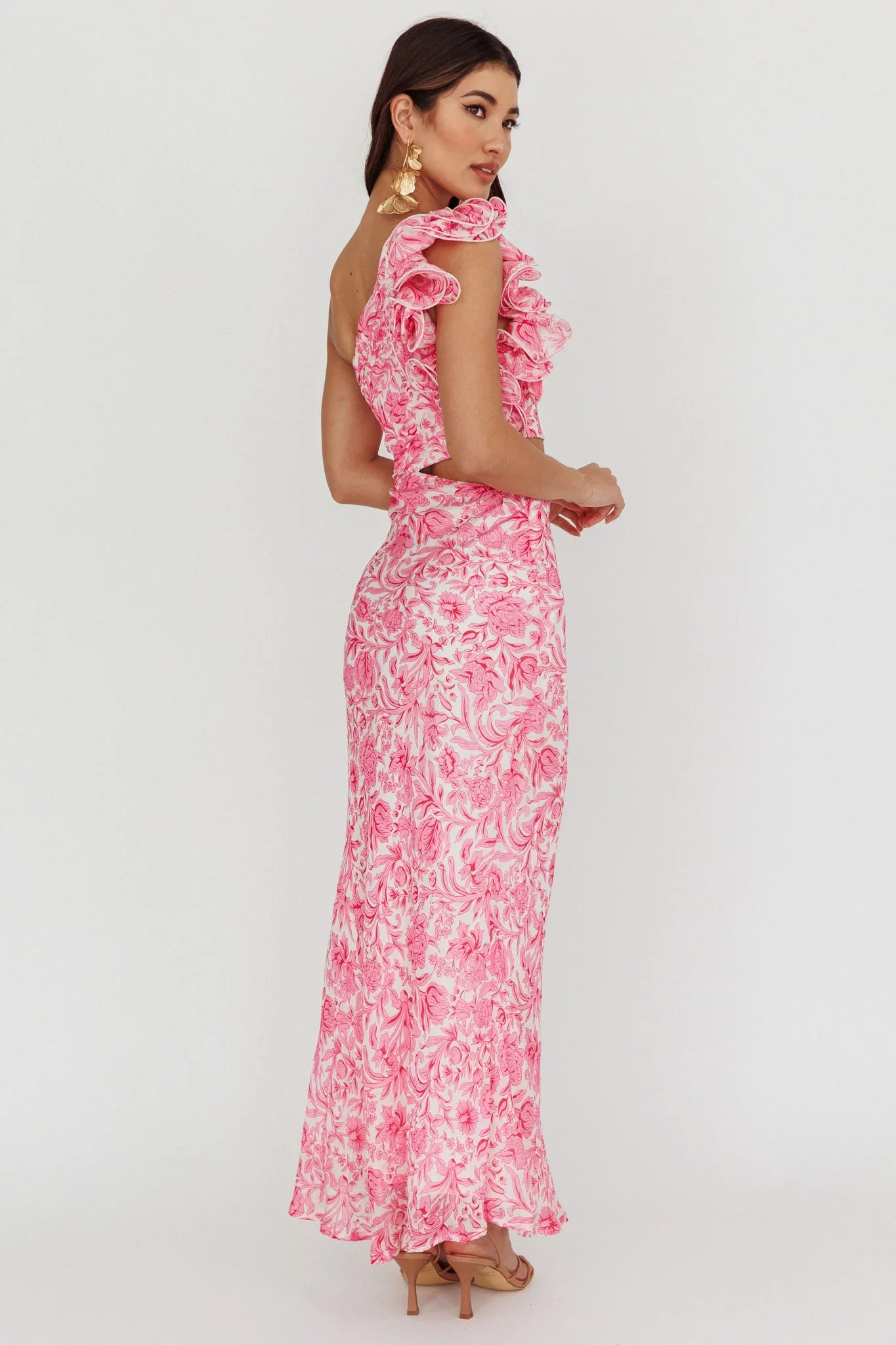 Make heads turn in our gorgeous Deanna midi dress. It features a one-shoulder style with pretty ruffle detail. Wear it as a reception dress or special birthday dinner teamed with white heels and a clutch for an unforgettable look.