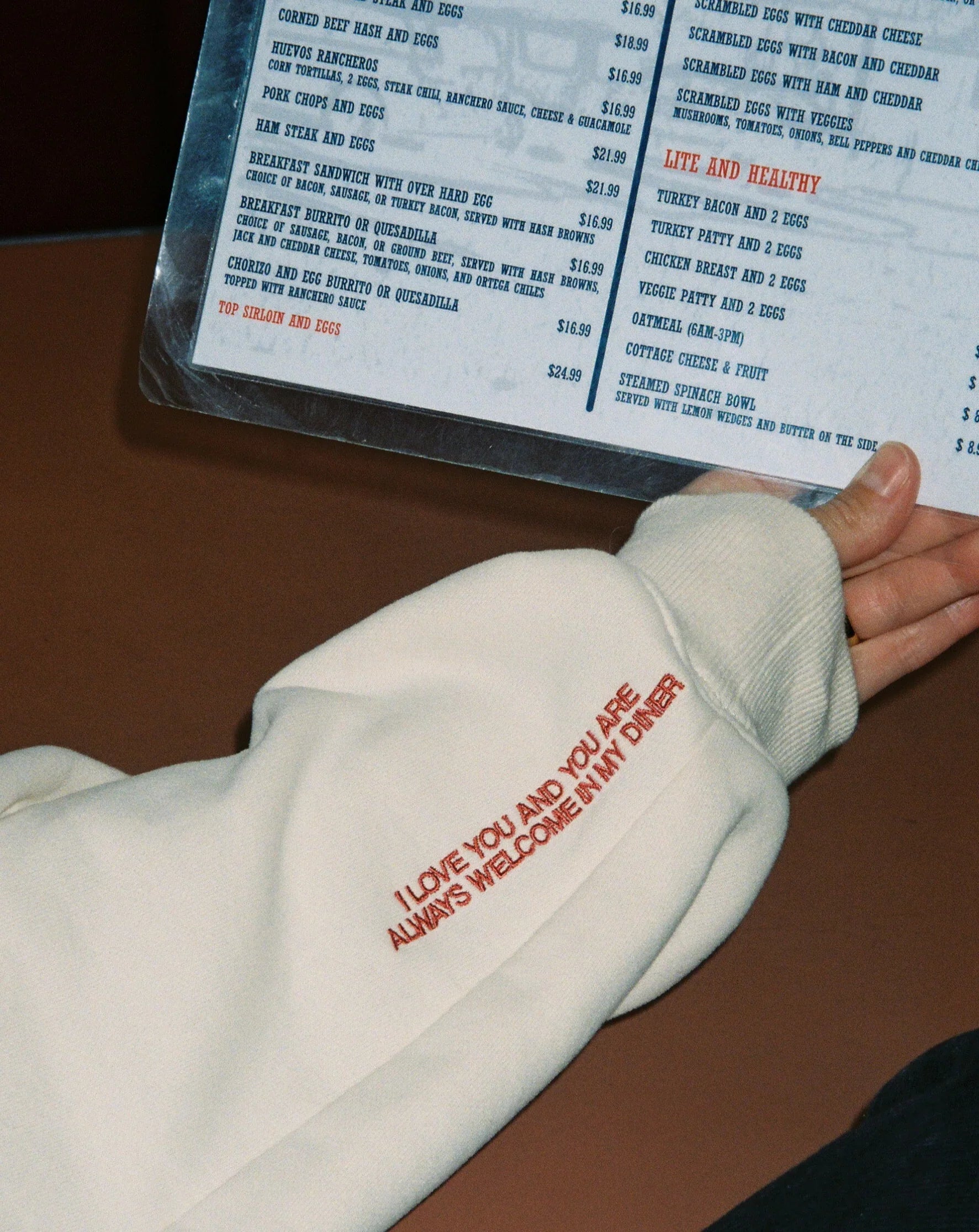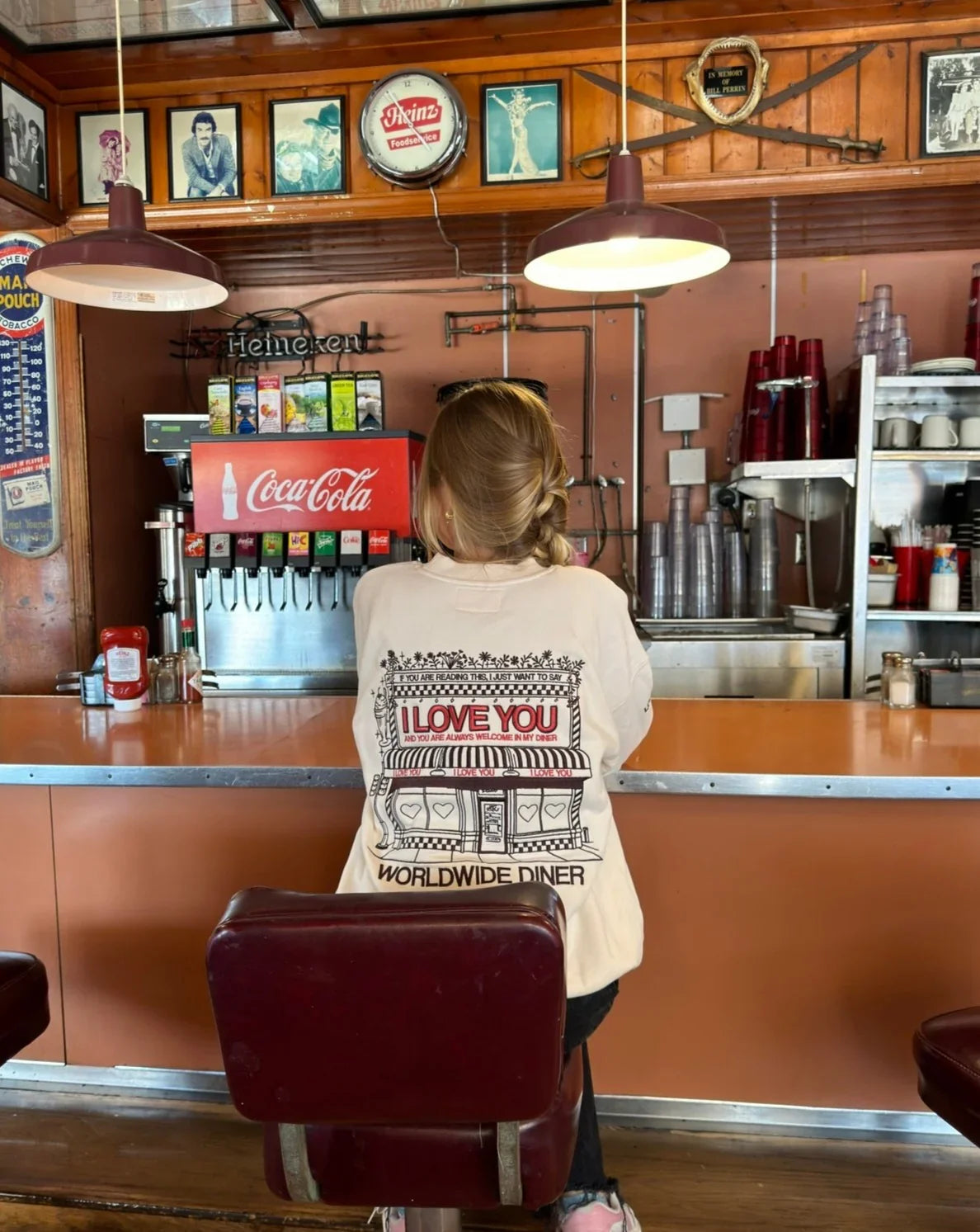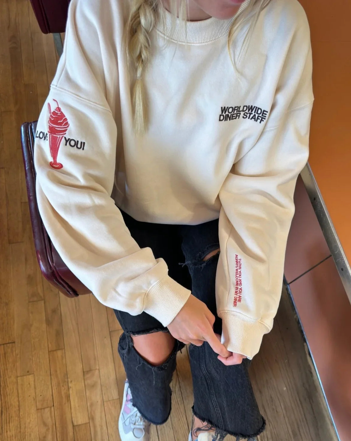 Join the Worldwide Diner Staff. This crew features the softest fabric we could get our hands on and high-quality embroidery that will stand the test of time. Medium thickness, perfect for breezy summer nights or chilly autumn days. All graphics are fully embroidered.
