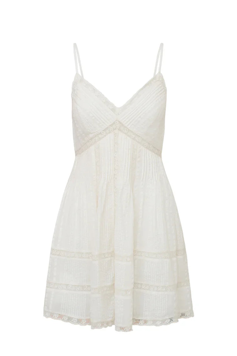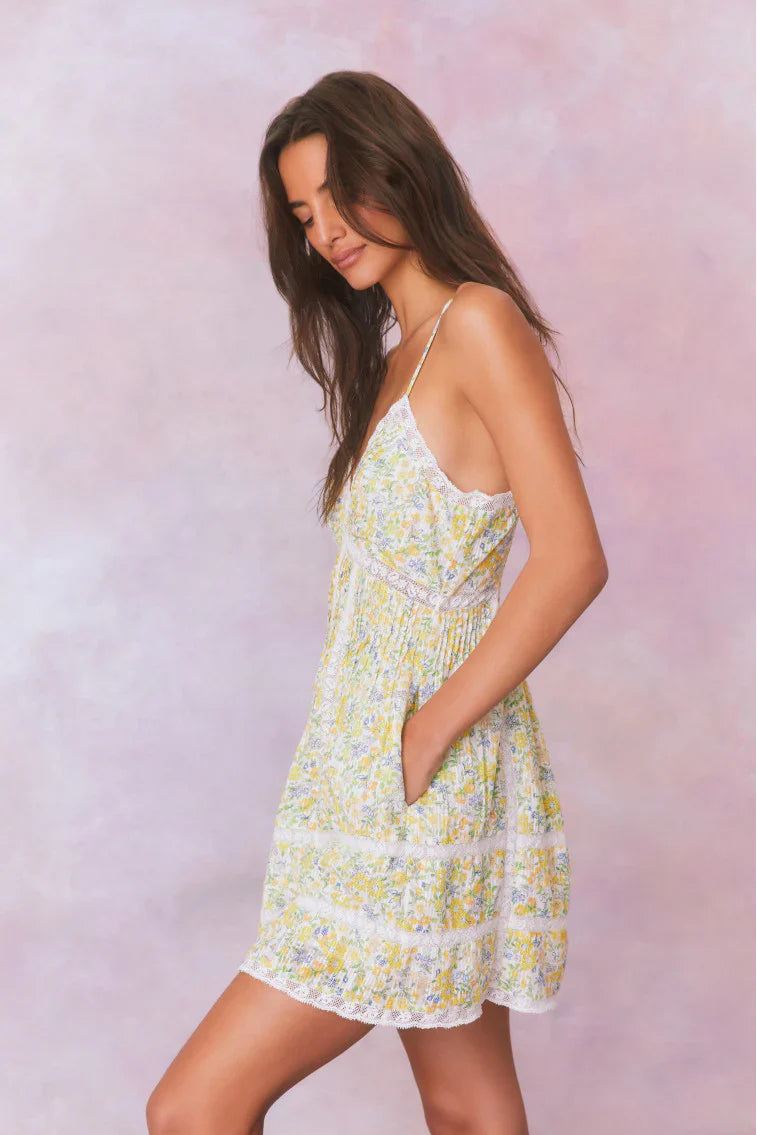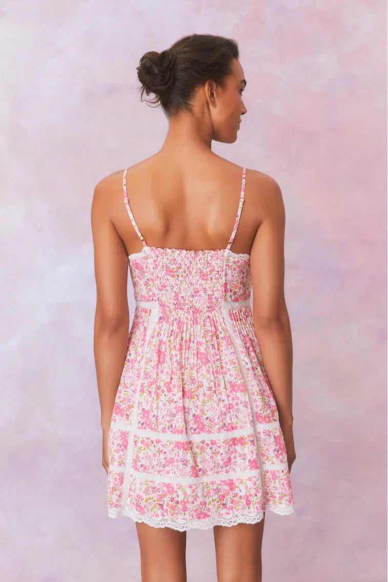 The Docila Dress returns as part of our Upcycled Icons Collection, a limited-edition, sustainable capsule featuring our best-selling silhouettes made from remnant LoveShackFancy fabrics. Warm weather perfection, this flirty mini dress has a flattering silhouette with lace insets and pintucking details. The dress features a smocked back, spaghetti straps, and an airy skirt finished with lace.