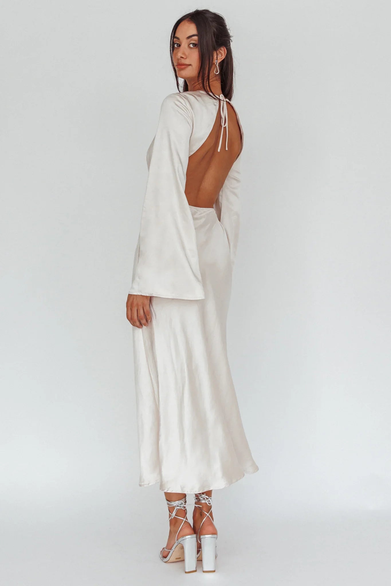 You'll go straight to the best-dressed list in our chic Doting dress. Featuring an open back and long bell sleeves. It's perfect for a special occasion or birthday celebration. Team it with mules and a tote for a head-turning look.