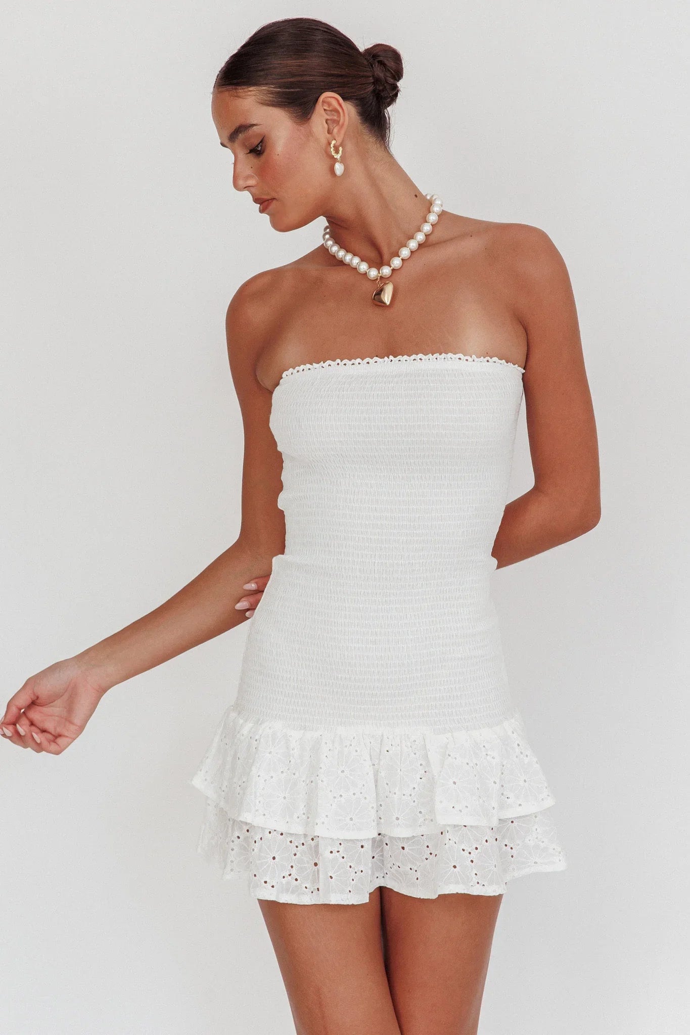 You will light up any room in our super cute Dream Time dress. Featuring a strapless neckline and shirred bodice. Perfect for a girls' night out or a date night! Team it with kitten heels and a saddle bag for a look we are loving.