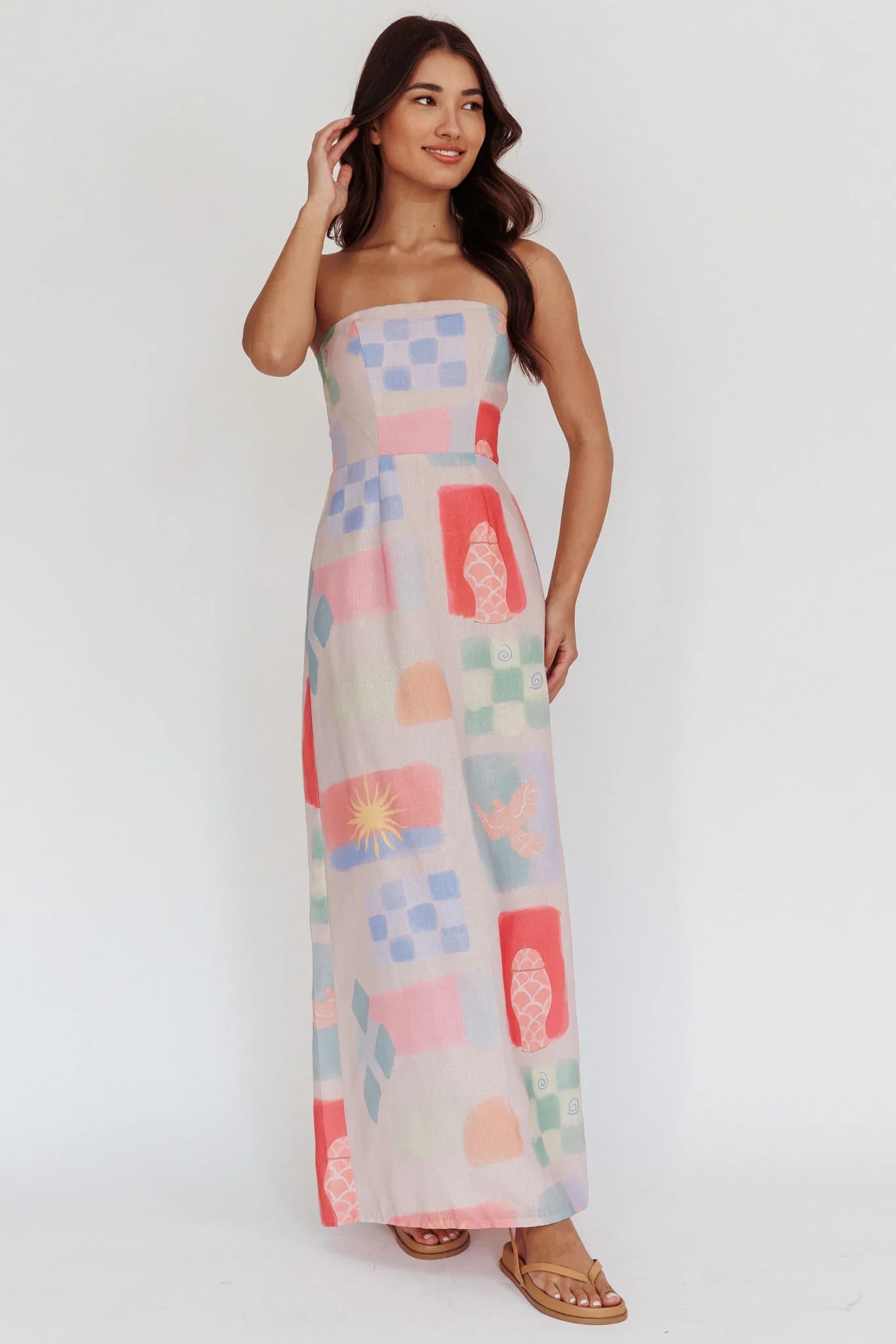 You'll feel like packing your bags and jet-setting to an island paradise in our Eastern Sun maxi dress. We are in love with its chic, column silhouette and unique print. Team it with sandals and a tote for a look that will turn heads.