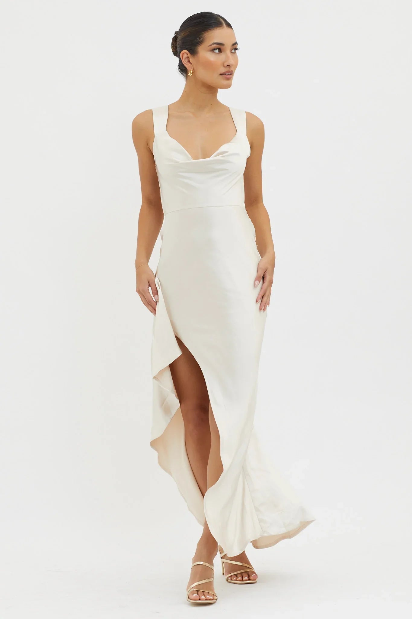 You will make jaws drop in our stunning Ellianna maxi dress. We are in love with its split open skirt with ruffle trim and lace-up back. This one is bound to leave a lasting impression at a gala event or your big day! Team it with strappy heels and a clutch for an unforgettable look.