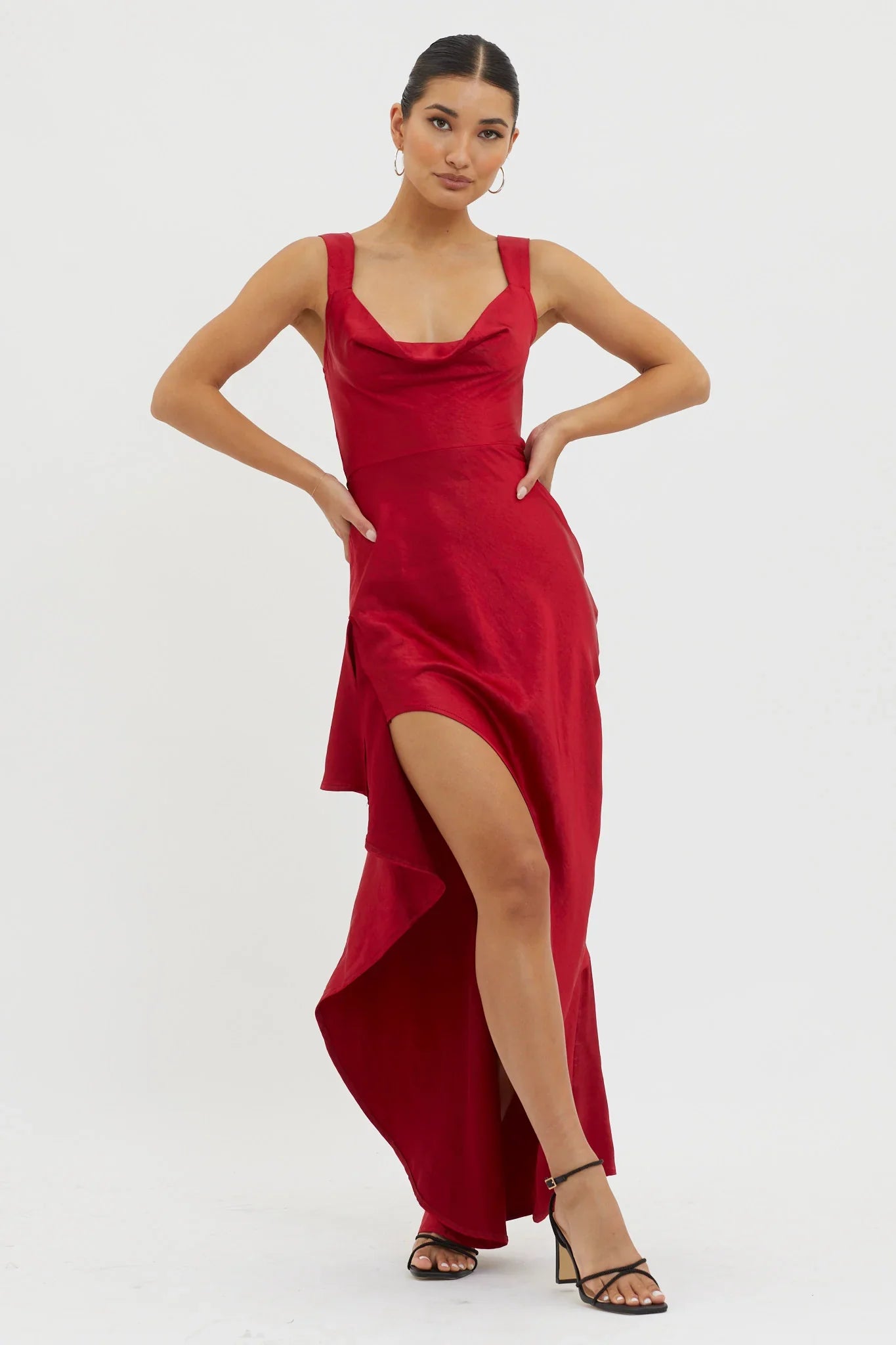 You will make jaws drop in our stunning Ellianna maxi dress. We are in love its split open skirt with ruffle trim and lace-up back. This one is bound to leave a lasting impression at your work holiday party! Team it with strappy heels and a clutch for an unforgettable look.