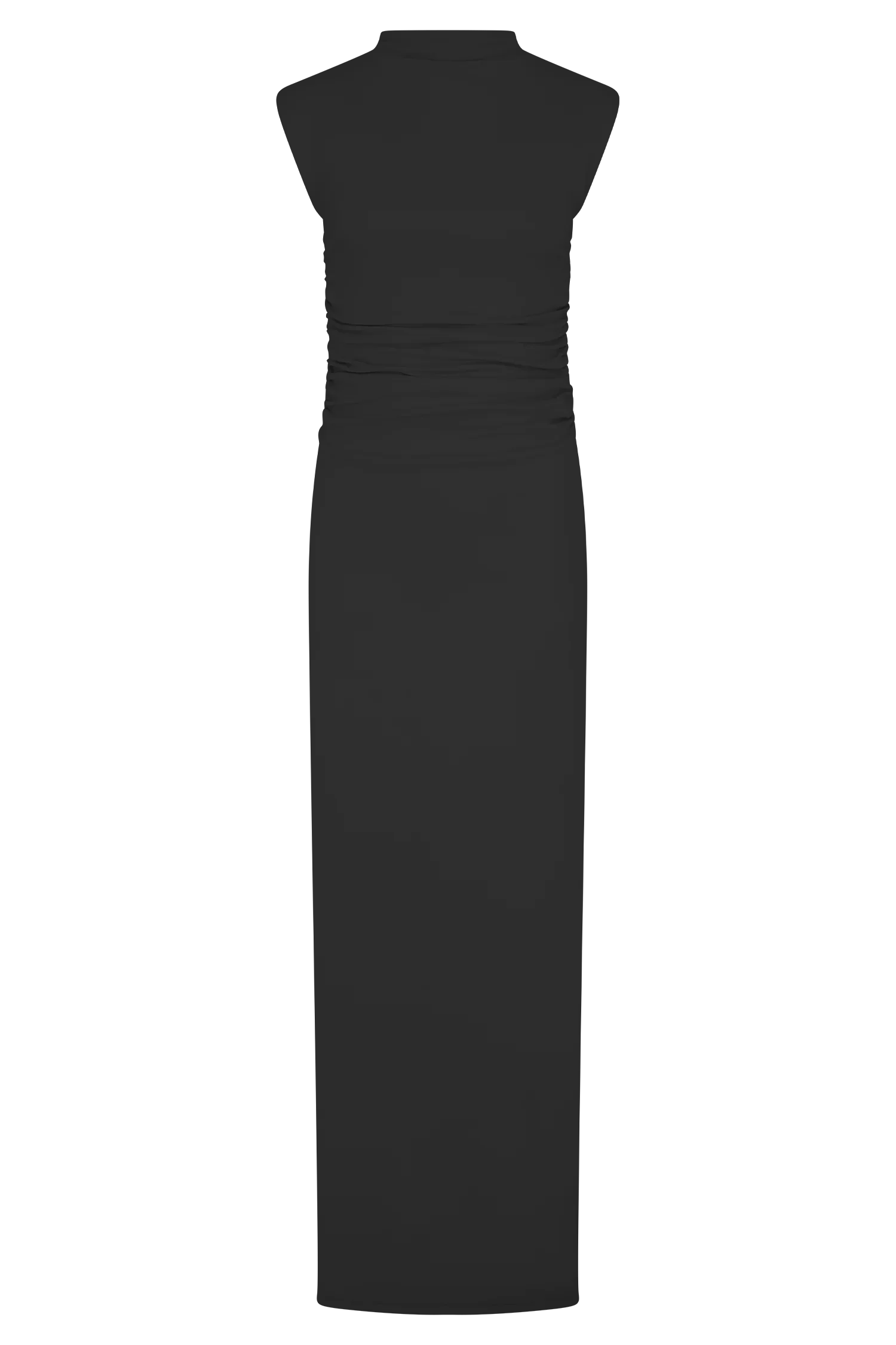 The ELLIOT High Neck Sleeveless Maxi Dress exudes effortless elegance with its refined design and sophisticated details. Featuring a high neckline and sleeveless cut, this maxi dress highlights a sleek, elongated silhouette. The ruched side details add a touch of texture and visual interest, creating a flattering fit that enhances the body's natural curves. Lined for a smooth, comfortable wear, and crafted from soft jersey fabrication, this dress combines style with ease. With its graceful maxi length, it’s perfect for making a chic statement at any formal or special occasion.