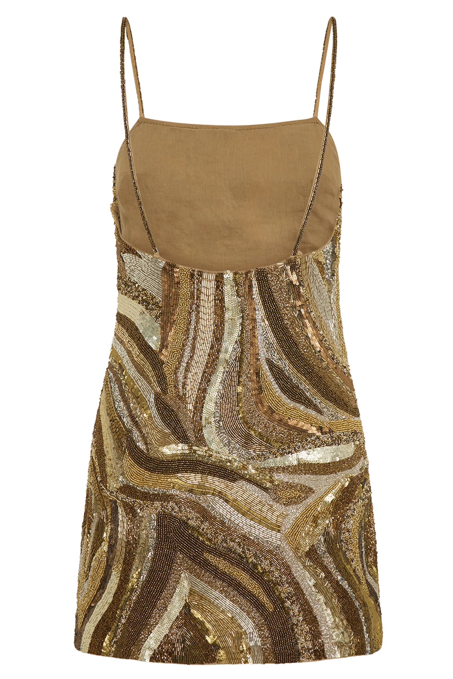 The ELOISE Hand Beaded Mini Dress combines intricate craftsmanship with a sleek silhouette, featuring a hand-beaded textured swirl design on a luxurious satin base. With its flattering A-line shape and mini length, this dress exudes understated glamour. Non-adjustable straps provide a seamless finish, while the fully lined interior ensures comfort. Perfect for special occasions, this piece radiates sophistication and style with every step.