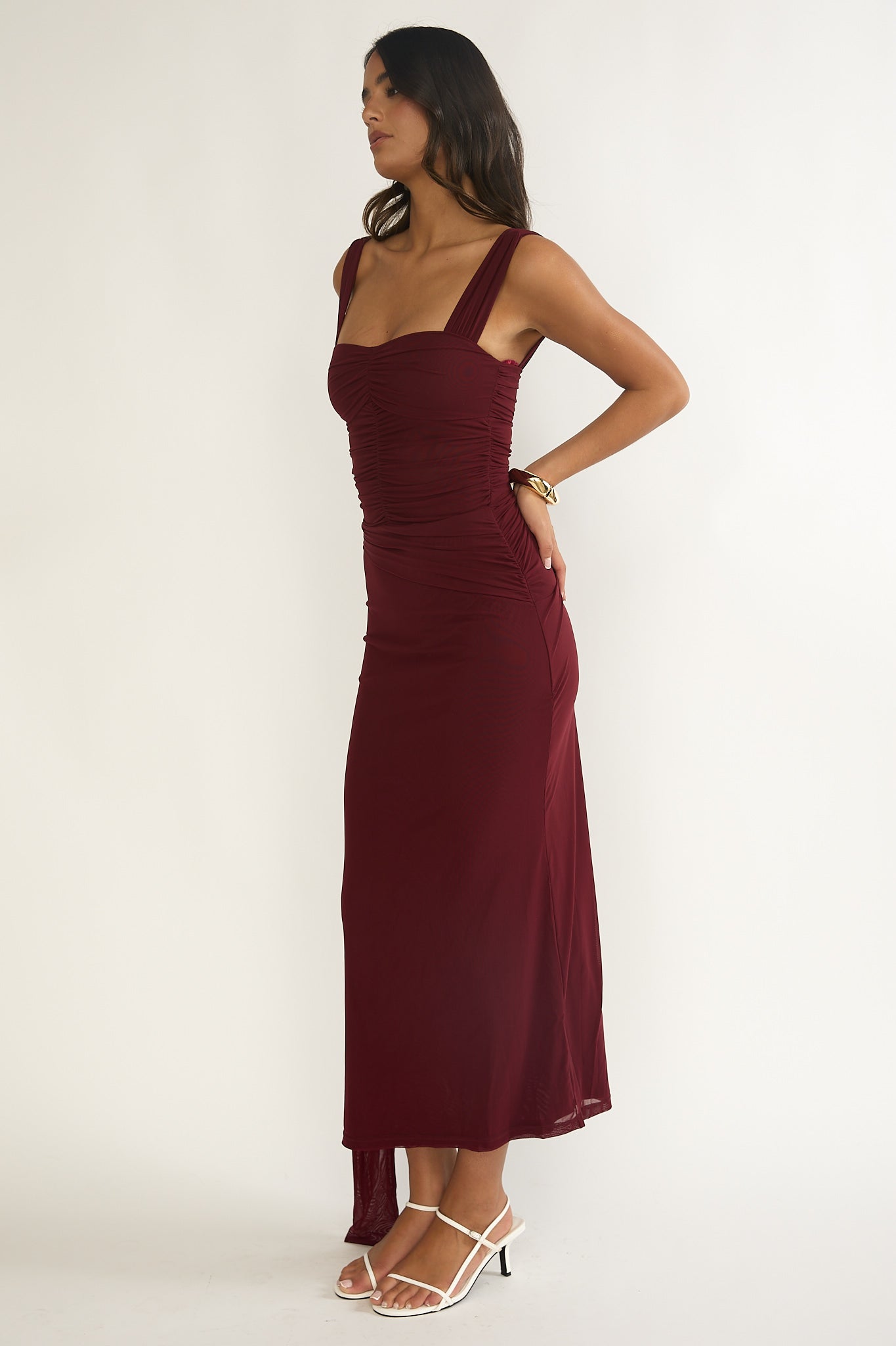 Steal the spotlight in our stunning Emara maxi dress. It features ruching detail and a sash in the waist. It's perfect for a romantic date with your lover teamed with kitten heels and a purse for an unforgettable look.