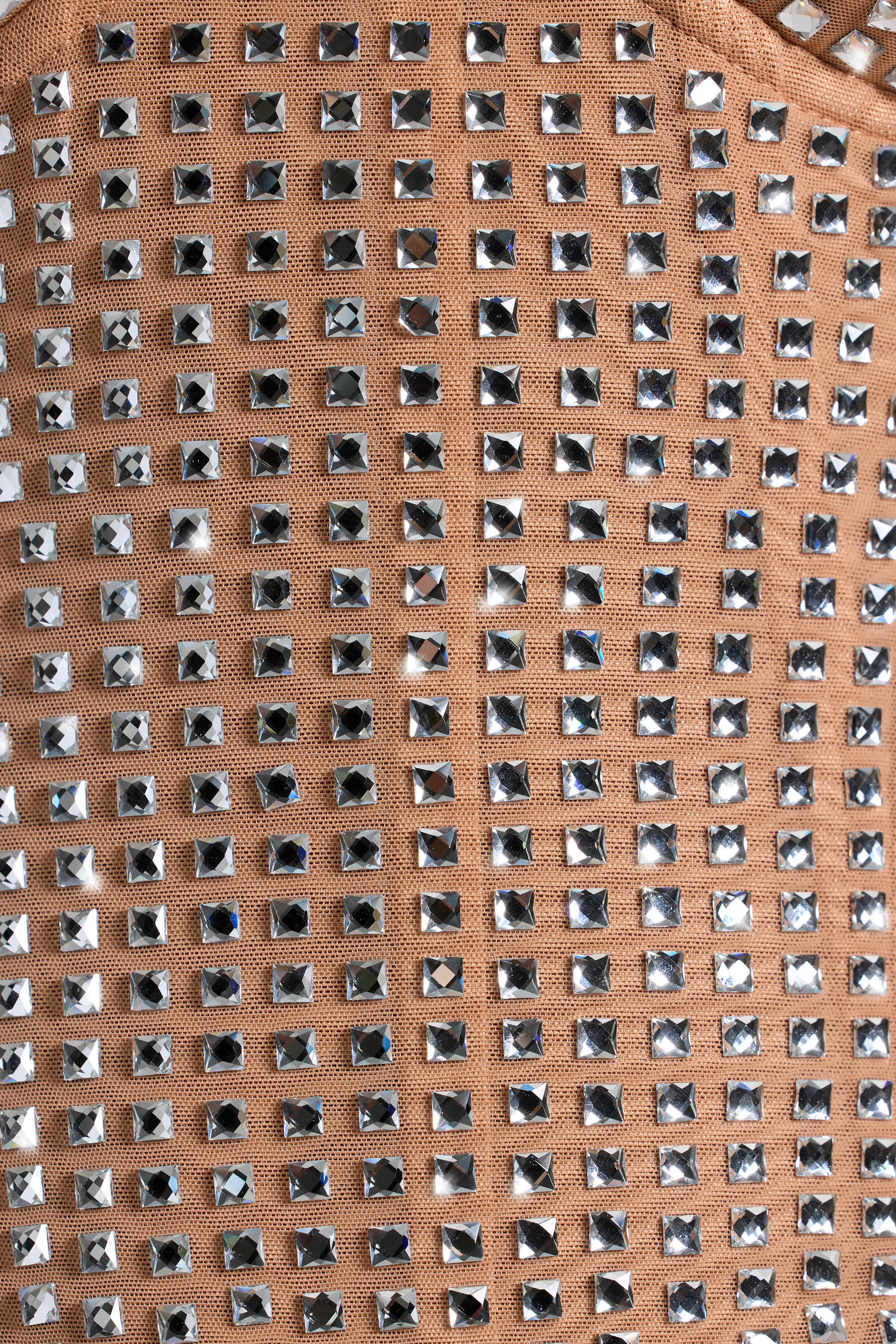 Scene-stealing silhouettes. Crafted from premium 20D mesh with a touch of stretch, the Azelie mini dress features a fitted bodice inspired by classic corsetry that cinches your silhouette. Framed with a sweetheart neck and moulded underwired cups, it falls to a mini-length skirt that's precisely draped to create an asymmetric look and it’s saturated with scores of sparkling HOTFIX embellishments that glitter under the light.