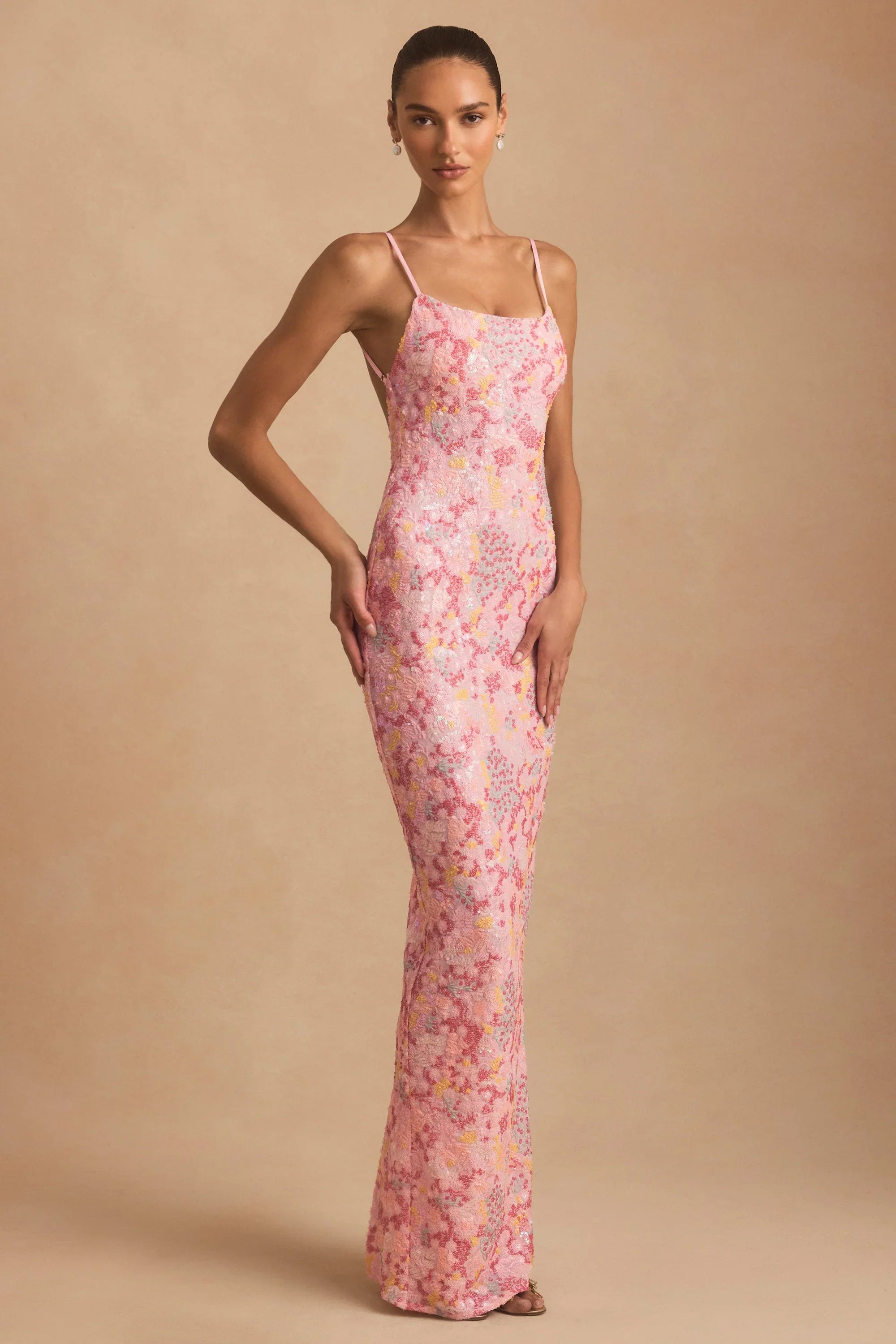 High-octane glamour meets clean lines with the Tavira maxi dress. A figure-hugging design crafted from premium mesh with a touch of stretch, its overlaid with scores of sparkling coral-inspired embellishments for maximum effect. The sultry low open back cements the statement feel.