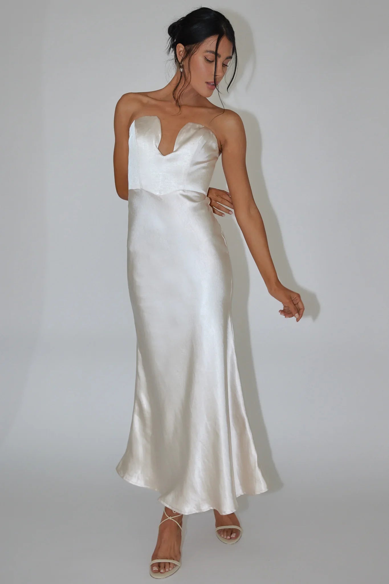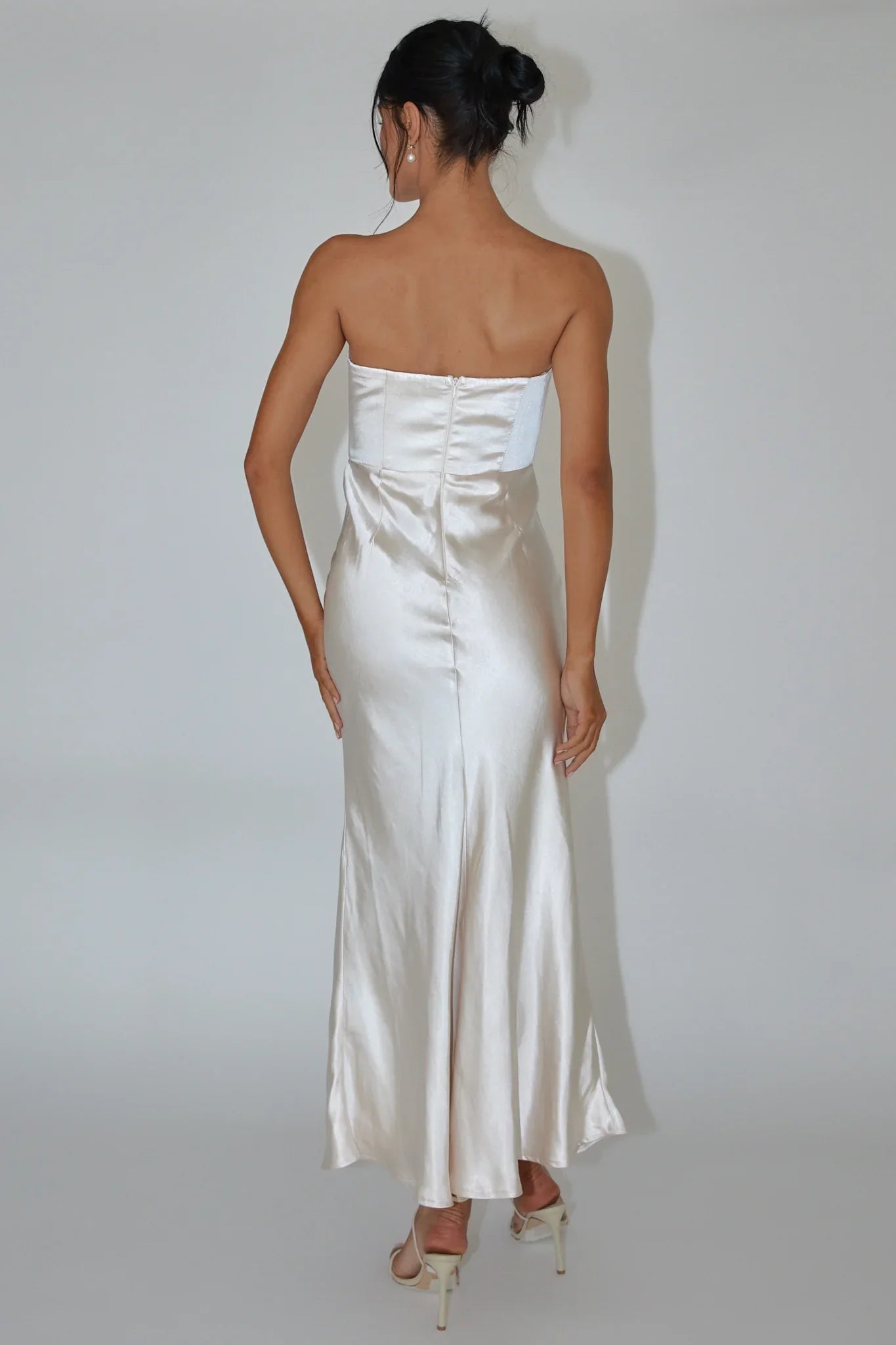 You will light up the room in our head-turning Encore maxi dress. Featuring a satin fabric and a unique neckline, it's perfect for a glam birthday celebration or special event. Team it with strappy, nude heels and a clutch and get ready for jaws to drop.