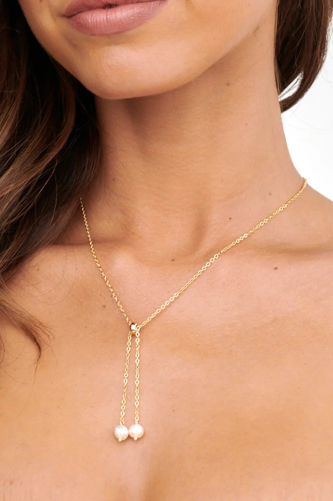 Steal the spotlight in our pretty Esme necklace. Featuring pearl drop accents, it's giving It Girl and we are obsessed! Team it with our Mad About You mini dress for an unforgettable look.