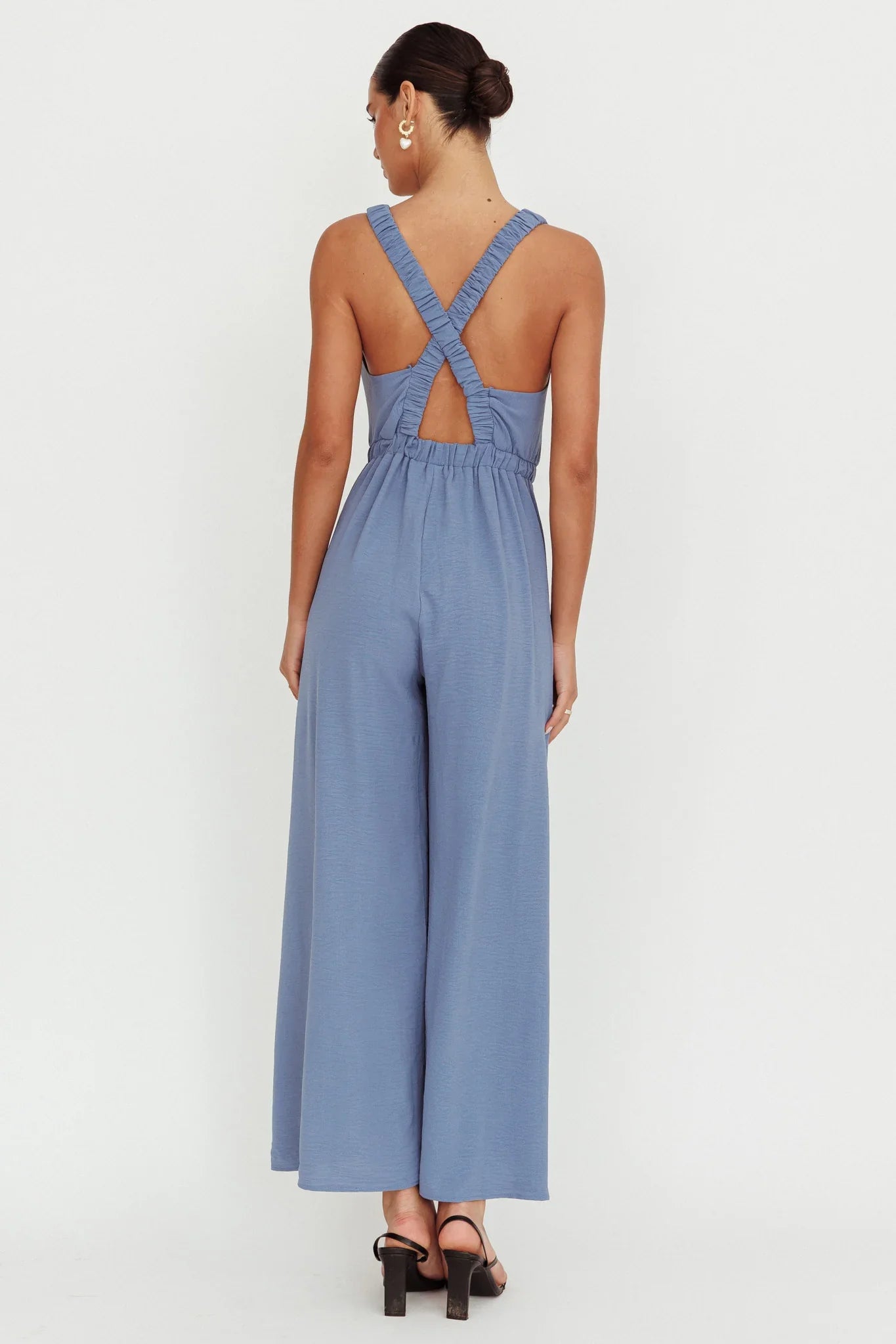 Light up the room in our Everything jumpsuit. The back crossover straps and wide leg pant ensures comfort without compromising on style. Whether you're attending a cocktail party or going out to brunch, this jumpsuit is sure to be your go-to choice.