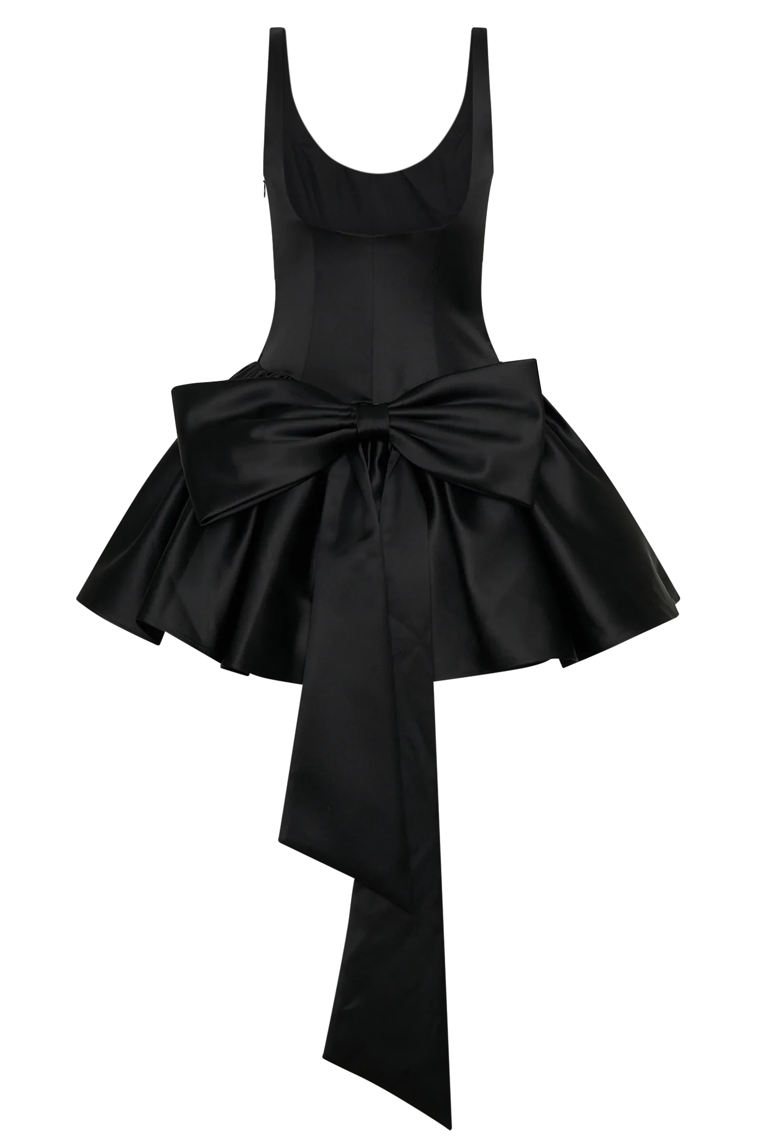 Turn heads in the FELICIA Satin Mini Dress, a flirty and feminine design perfect for special occasions. With a scoop neckline and a structured bodice, this dress provides a flattering fit, while the side zip ensures effortless wear. The full mini skirt, complete with a playful tulle underlay, adds volume and movement, creating a whimsical silhouette that catches every eye. A charming bow detail graces the back, adding a touch of elegance to this stunning piece. Fully lined for comfort, this dress is your go-to for making an unforgettable impression.