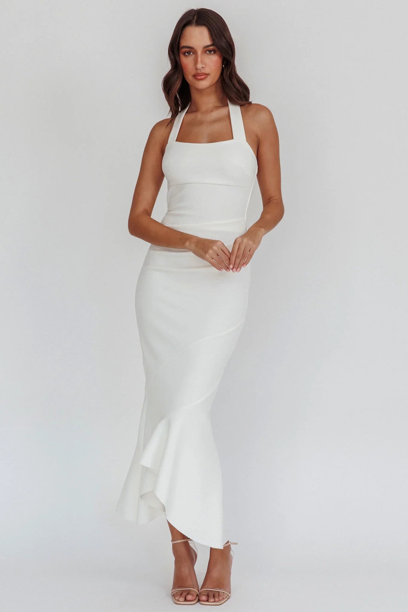 Steal the spotlight in our stunning Fire Of Stars midi dress. It features a flattering halter neckline and a mermaid silhouette. It's perfect for a special event or birthday celebration. Team it with diamante mules and a satin clutch for an unforgettable look.