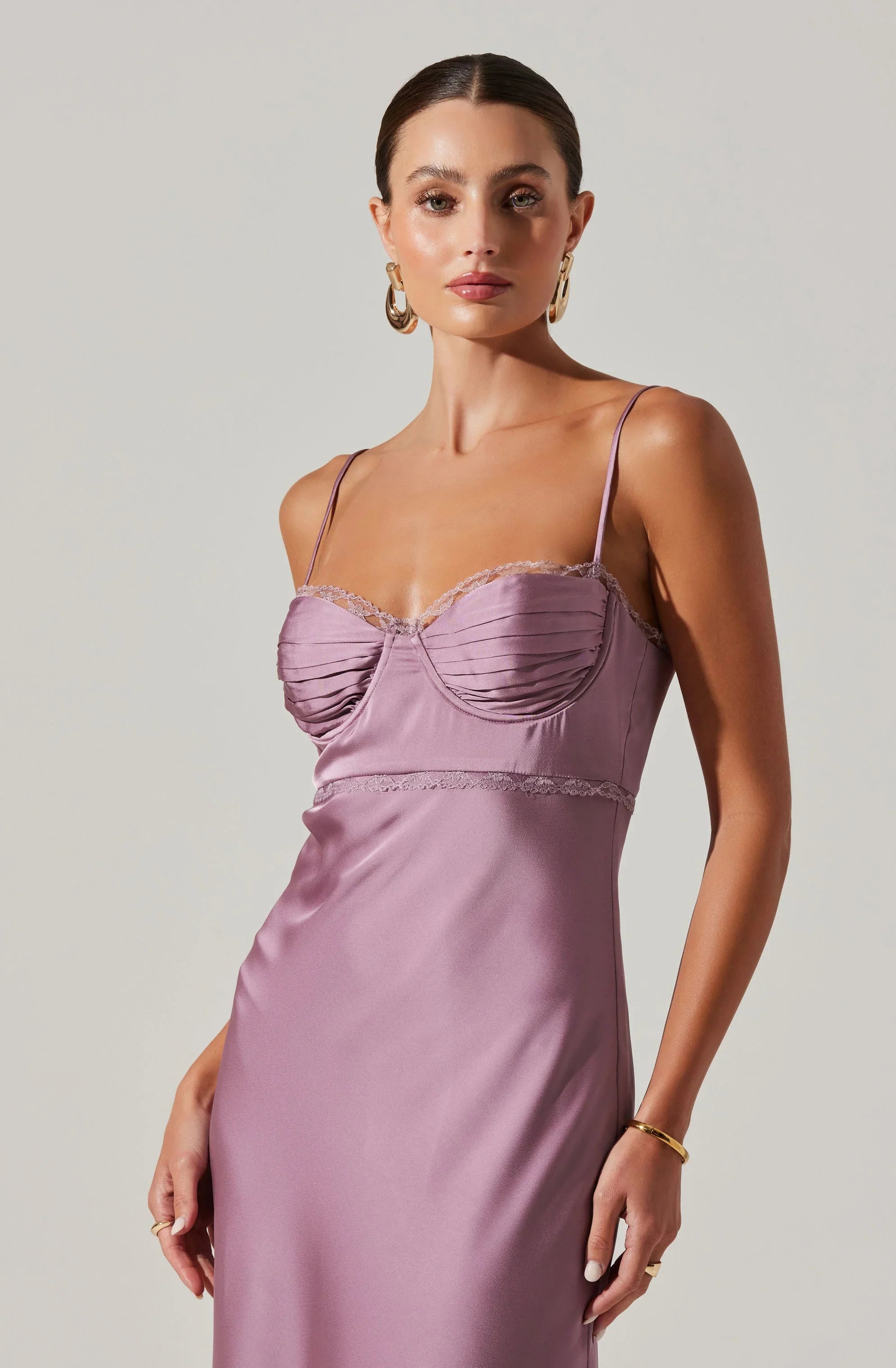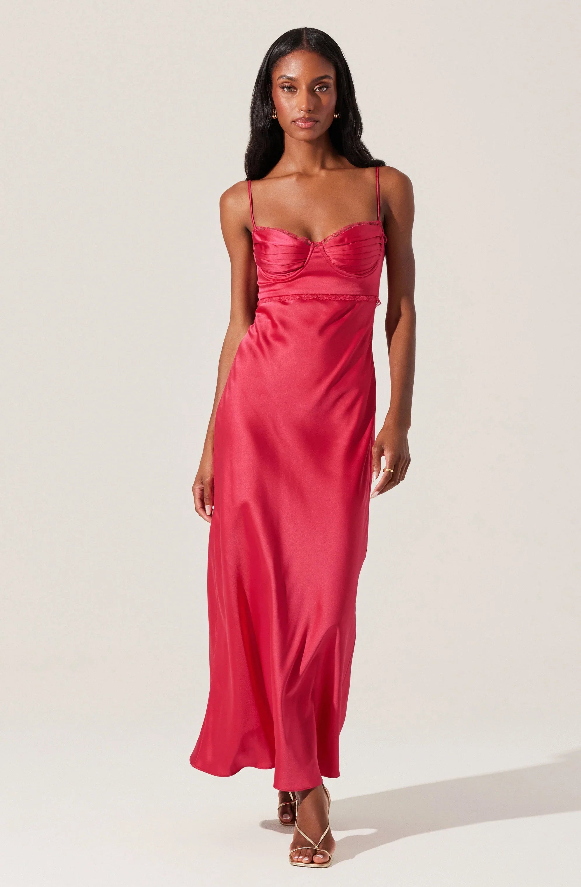 Sleek lines on this bustier maxi dress make it the perfect option for a formal wedding, bridesmaid dress or any fancy occasion.