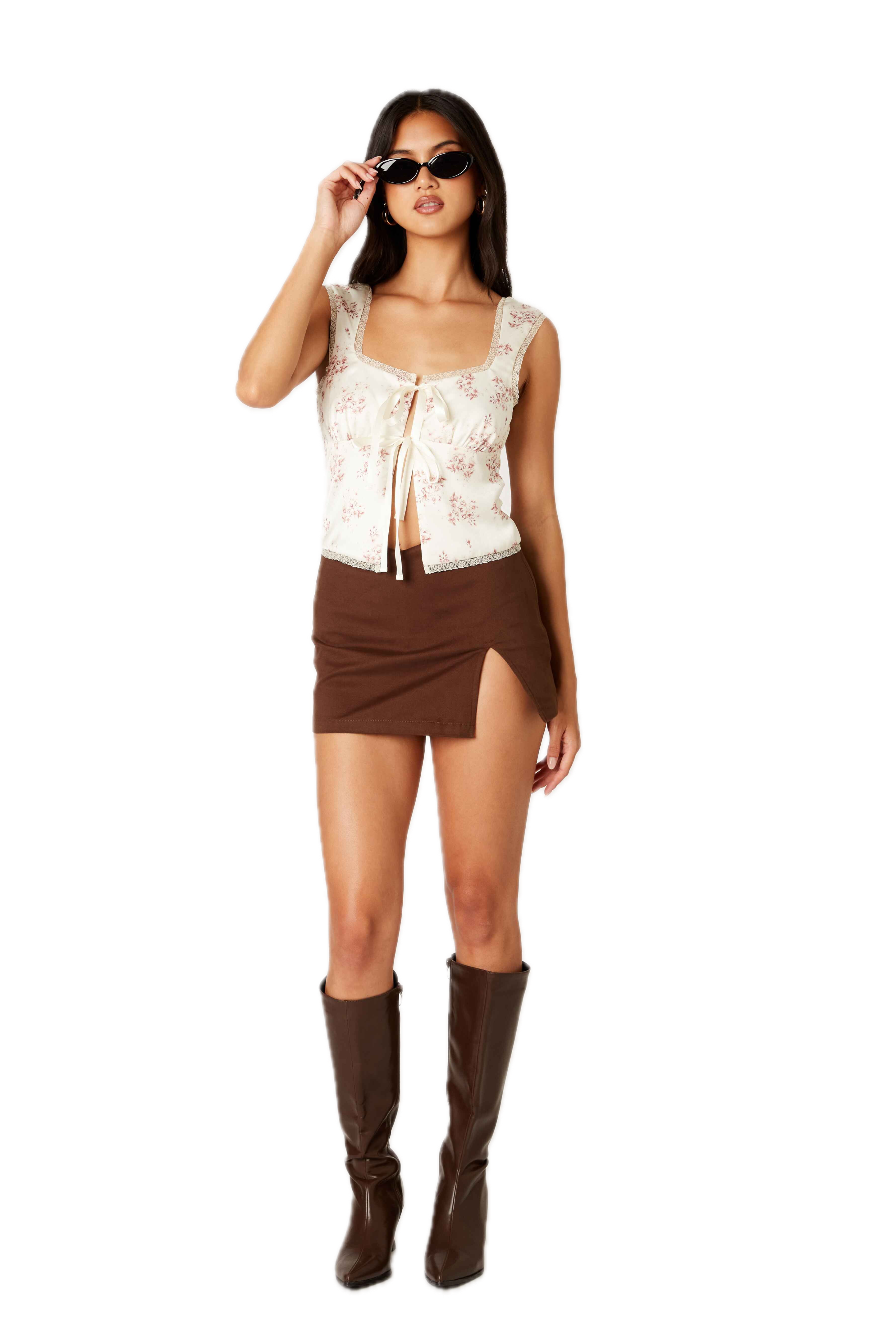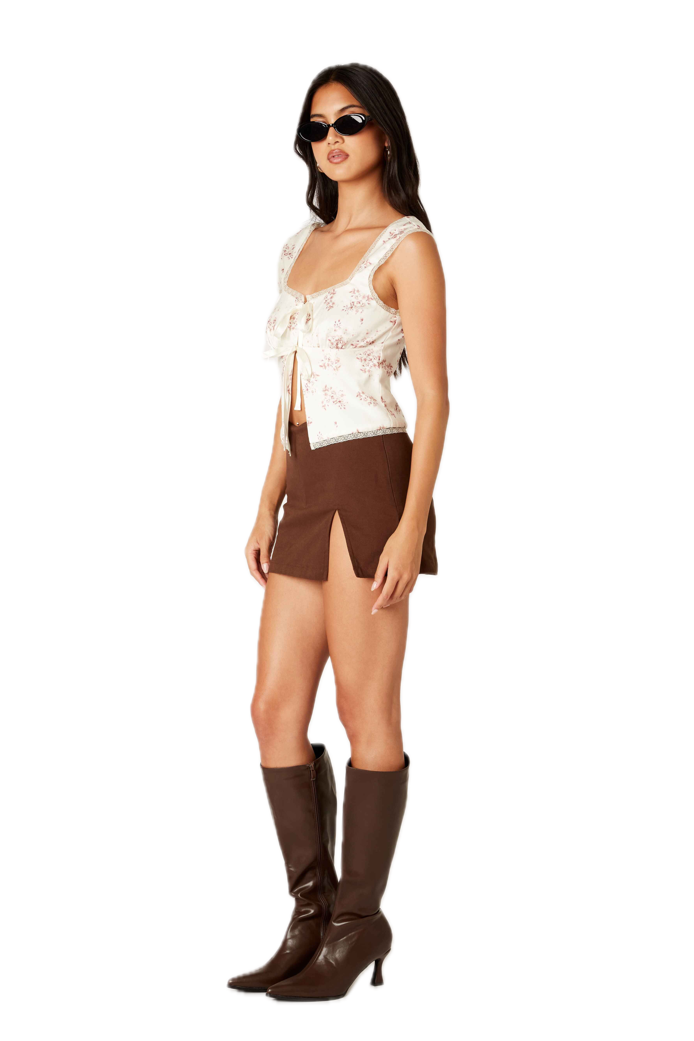Side slit lined mini skirt