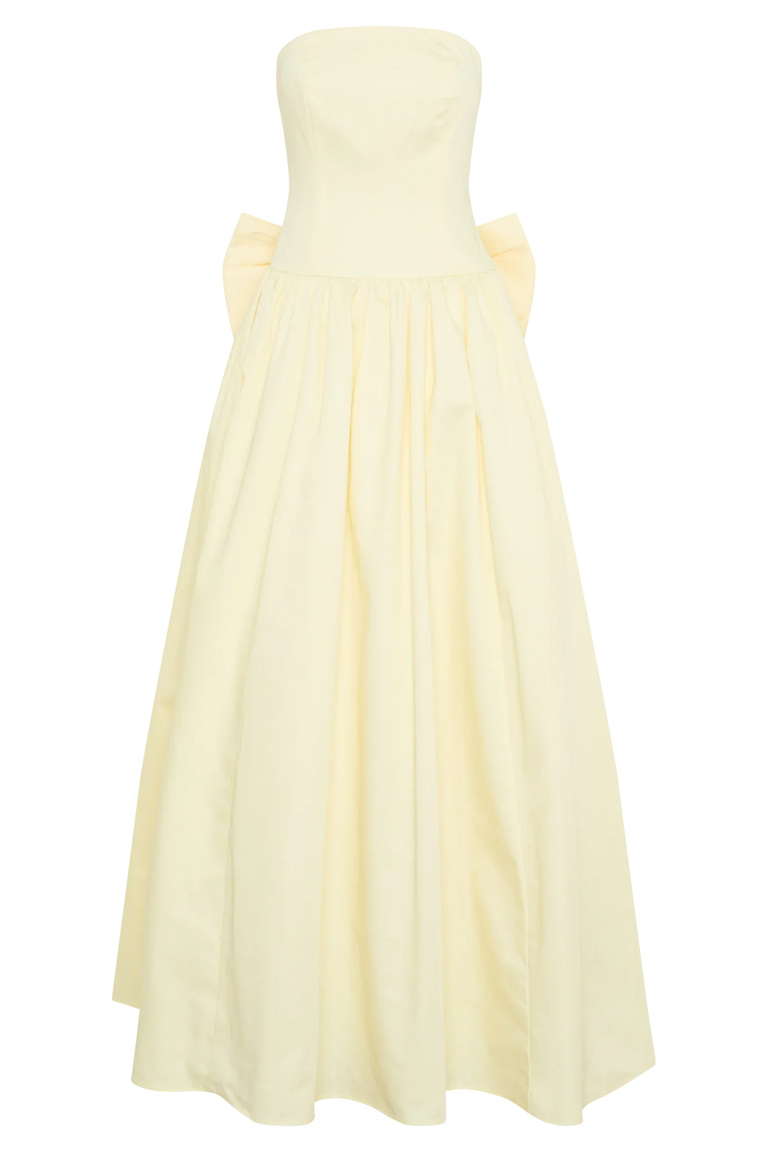 Make a statement in the FRANCES Strapless Bow Maxi Dress, a stunning combination of elegance and playful sophistication. Featuring a strapless design with a fitted bodice that flatters the figure, this dress boasts a drop waist and a full, voluminous skirt that adds drama and movement. The gathered waist enhances the shape, while the centre back bow detail adds a charming, feminine touch. Fully lined for comfort and quality, this dress is perfect for any formal event or special occasion, ensuring you turn heads with every step.