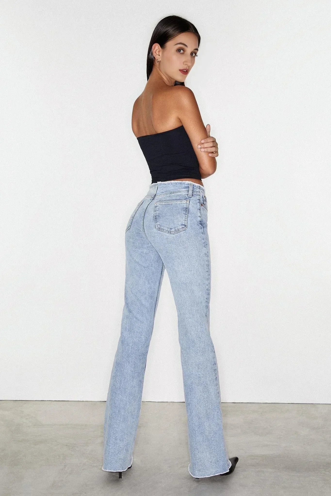 Add an edge to your denim collection with our Frayed Featuring a low rise fit, bootcut leg with frayed detailing in a light blue wash Complete your look with the