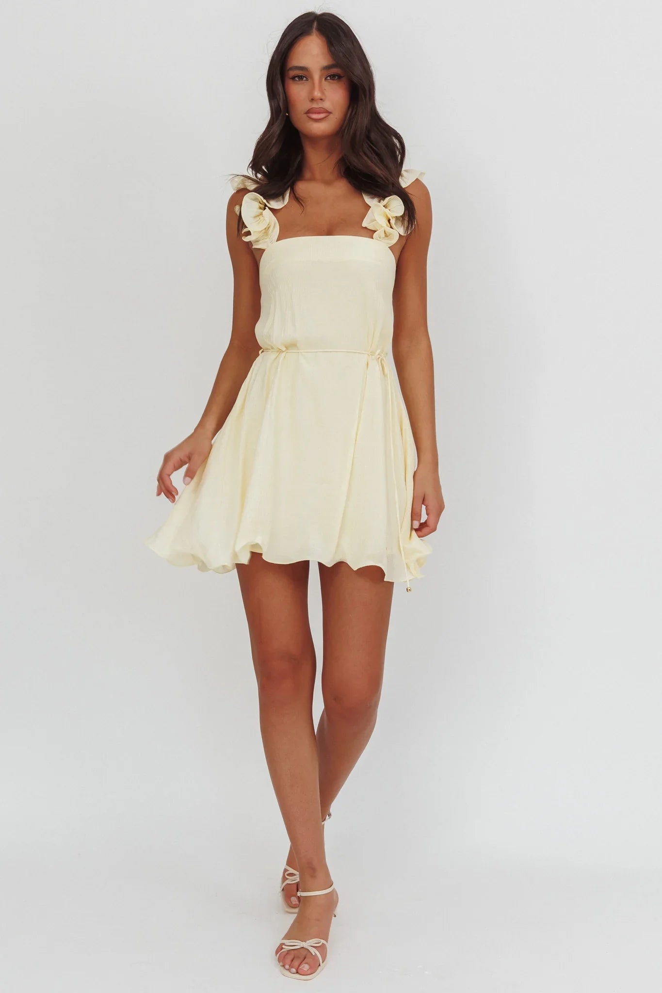 Twirl the night away in our gorgeous Glow mini dress. It features lettuce-edge ruffle straps and a tie around the waist. It's the perfect choice for a wedding or special event teamed with strappy heels and a clutch for a look that's fit for a princess.