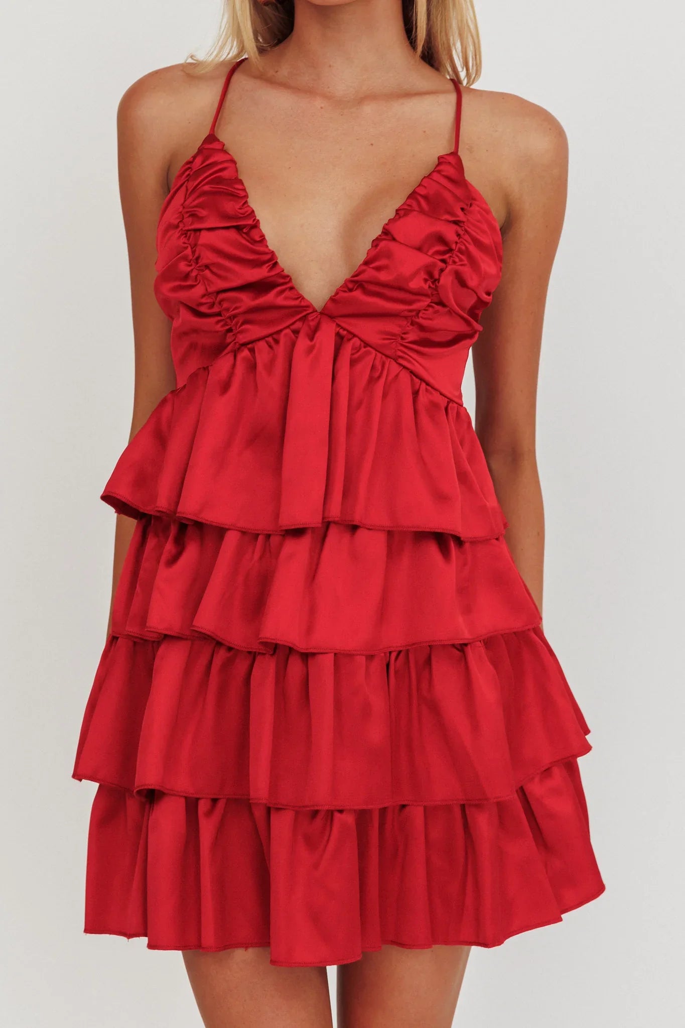 Steal the show with our pretty Heavenly Bliss mini dress! Designed for those who crave a touch of glamour, this dress features a playful ruffle skirt. Perfect for cocktail parties or romantic date, this dress will elevate your evening look with effortless style.