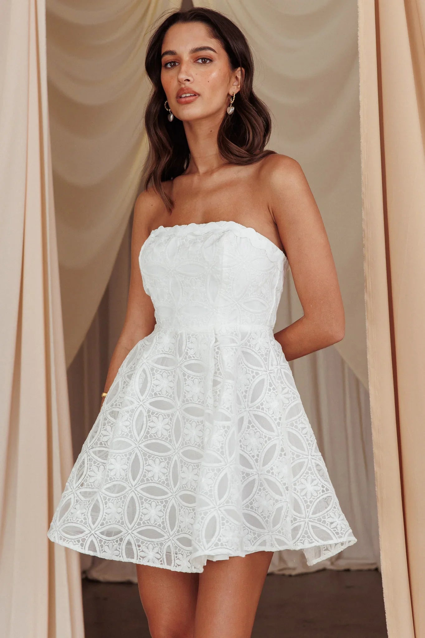 Make an entrance in our stunning Kesenia mini dress. It features embroidery detail throughout and a strapless design and is perfect for a bridal shower or birthday celebration. Team it with strappy, white heels and a tote for a look we have fallen in love with.