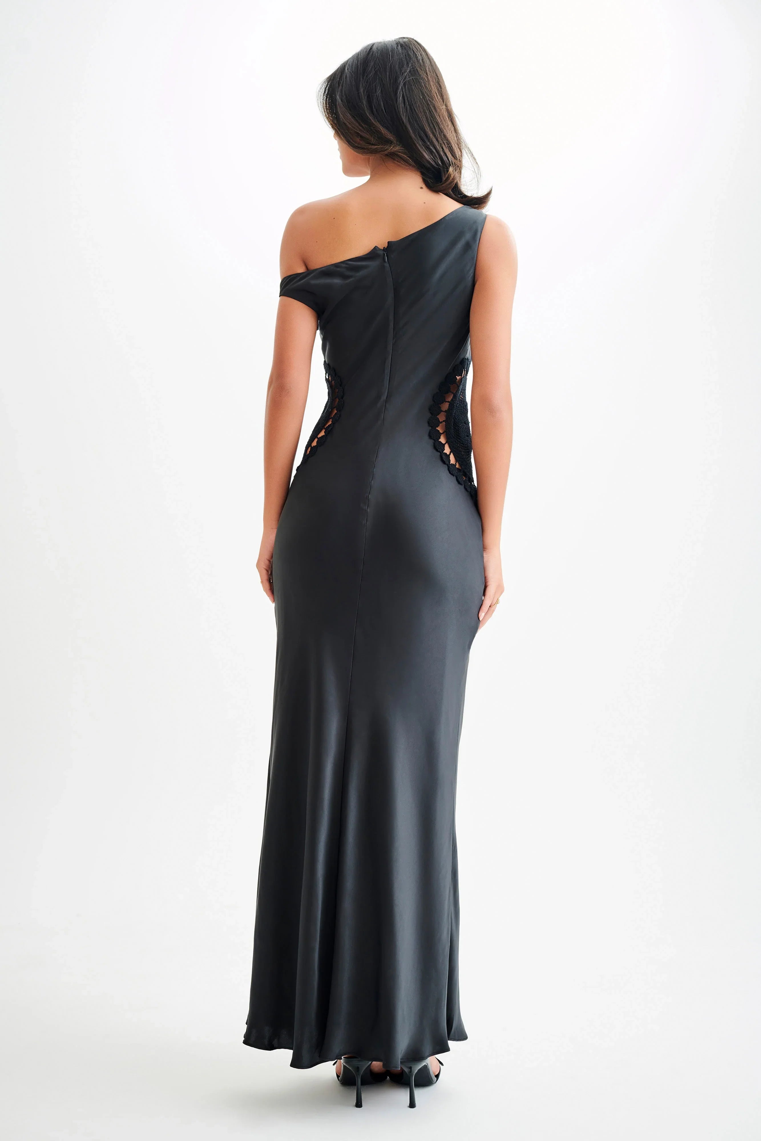 Step into Satin Serenity with the KRISTINA Maxi Dress With Crochet, a perfect blend of sophistication and relaxed charm. Crafted from luxurious satin, it features cowl necklines at the front and back, offering a graceful silhouette from every angle. Delicate crochet detailing at the side waist adds intricate charm, enhancing the dress's allure. Designed for comfort with a relaxed fit, it includes a side zip, hoop & eye closure for easy wear. This maxi-length dress is ideal for formal occasions or evening events and combines timeless style with contemporary ease.