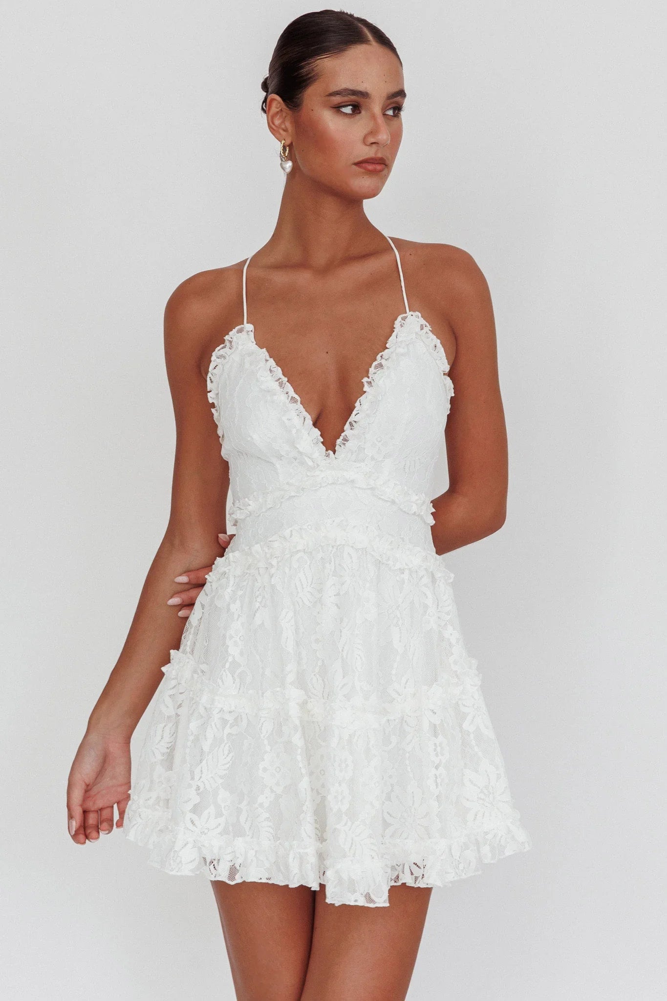 Laney. She's ALL that. And you will be too in this super cute dress. Our favorite part? THE most adorable low back trimmed with a feminine frill detail. It's perfect for a birthday celebration or wear it on a girls' night out with strappy nude heels and a cute purse.