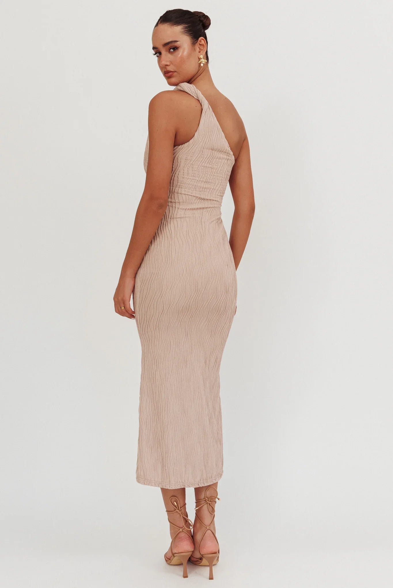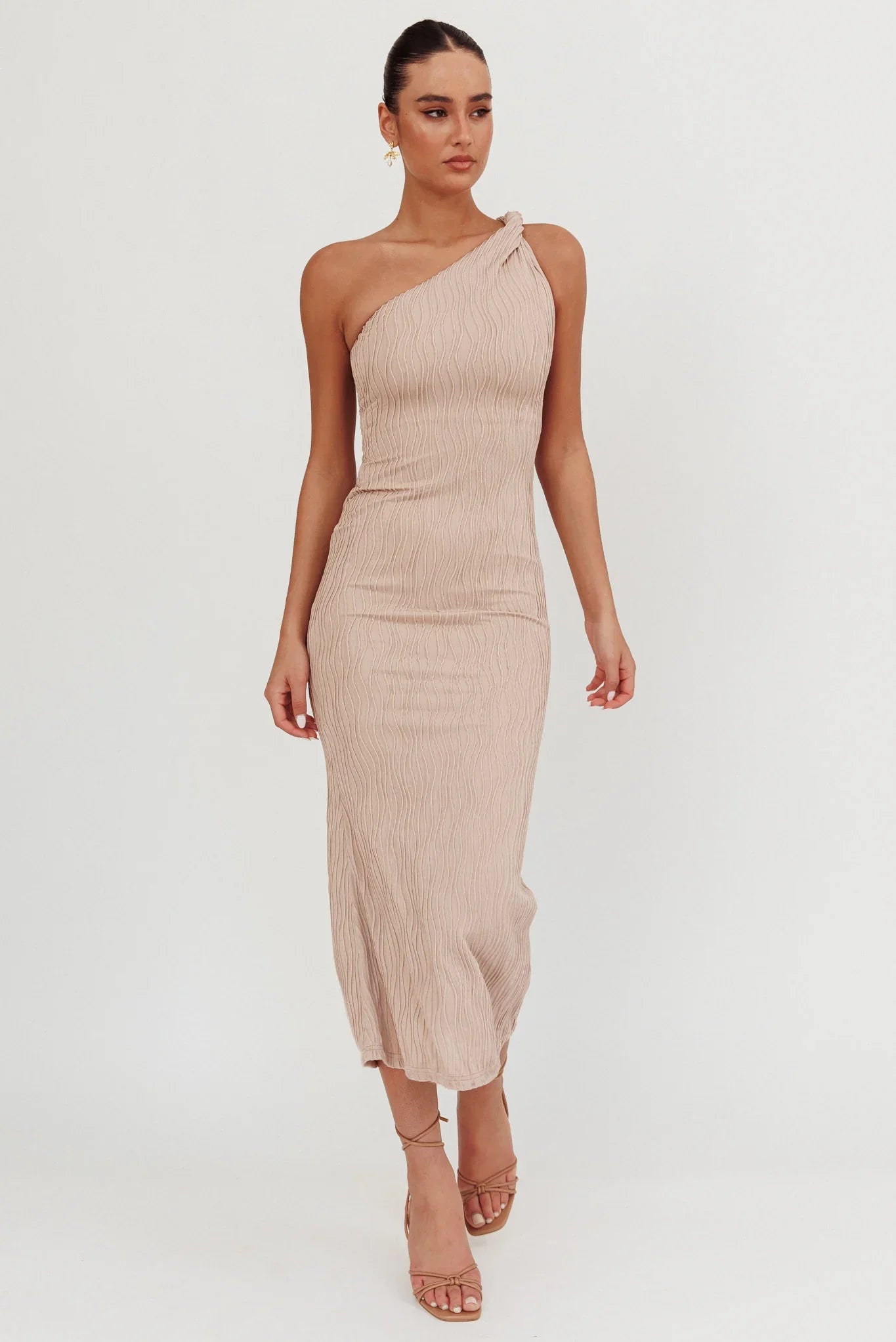 Stop the show in our gorgeous Lingering Love midi dress. We are head over heels for its pretty, textured fabric and one-shoulder design! Perfect for a girls' night out or a special celebration teamed with a clutch and kitten heels for a stunning look.