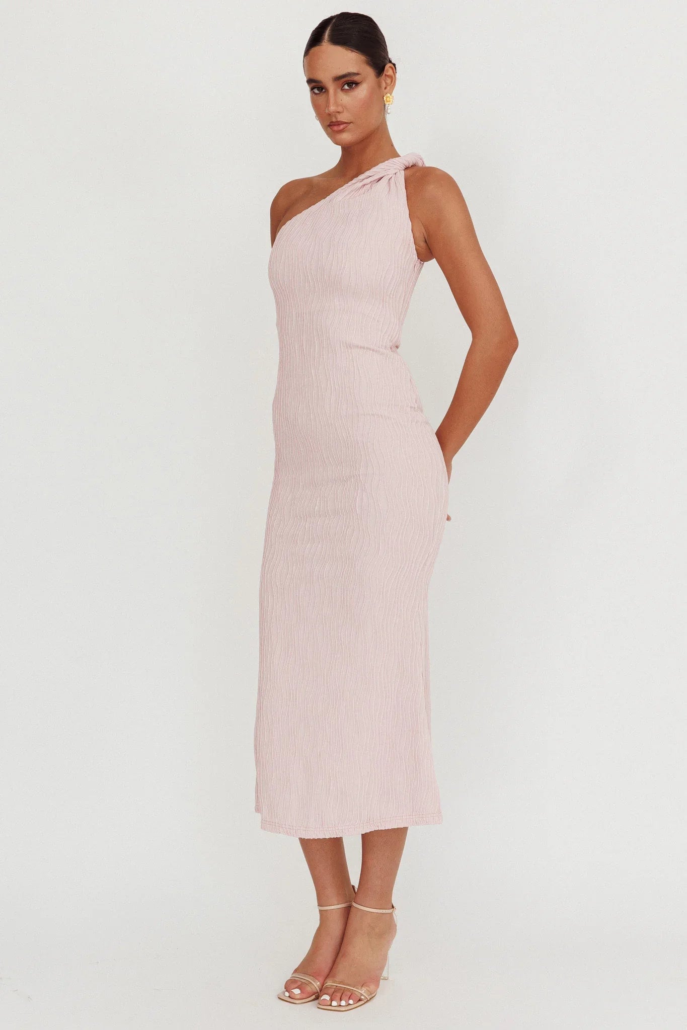 Stop the show in our gorgeous Lingering Love midi dress. We are head over heels for its pretty, textured fabric and one-shoulder design! Perfect for a girls' night out or a special celebration teamed with a clutch and kitten heels for a stunning look.