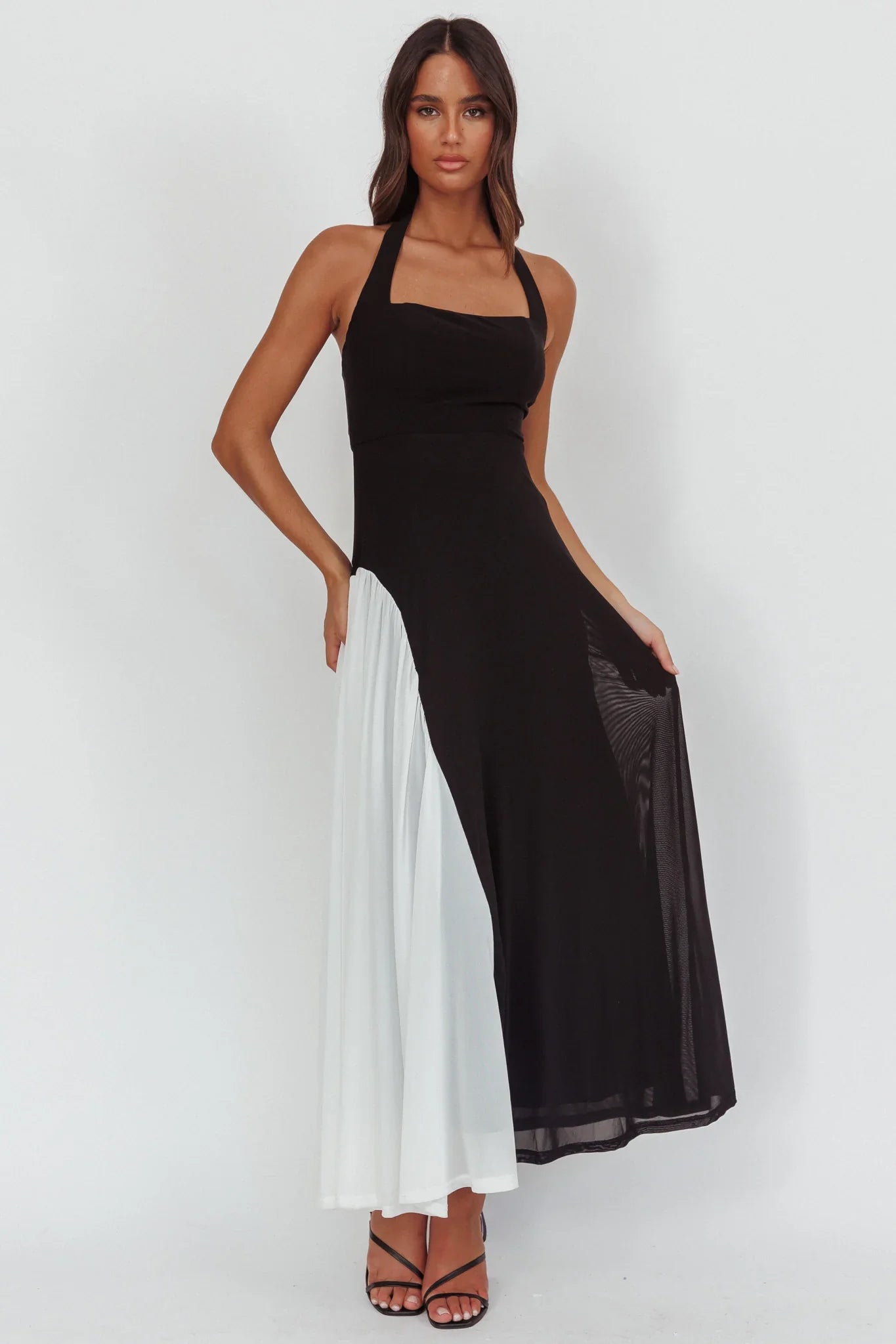 We've fallen head over heels for our dreamy Lira maxi dress. Featuring a halter neckline and contrasting insert in the skirt, you'll be flooded with compliments! Perfect for girls' night teamed with strappy heels and a purse for a hot look we are loving.