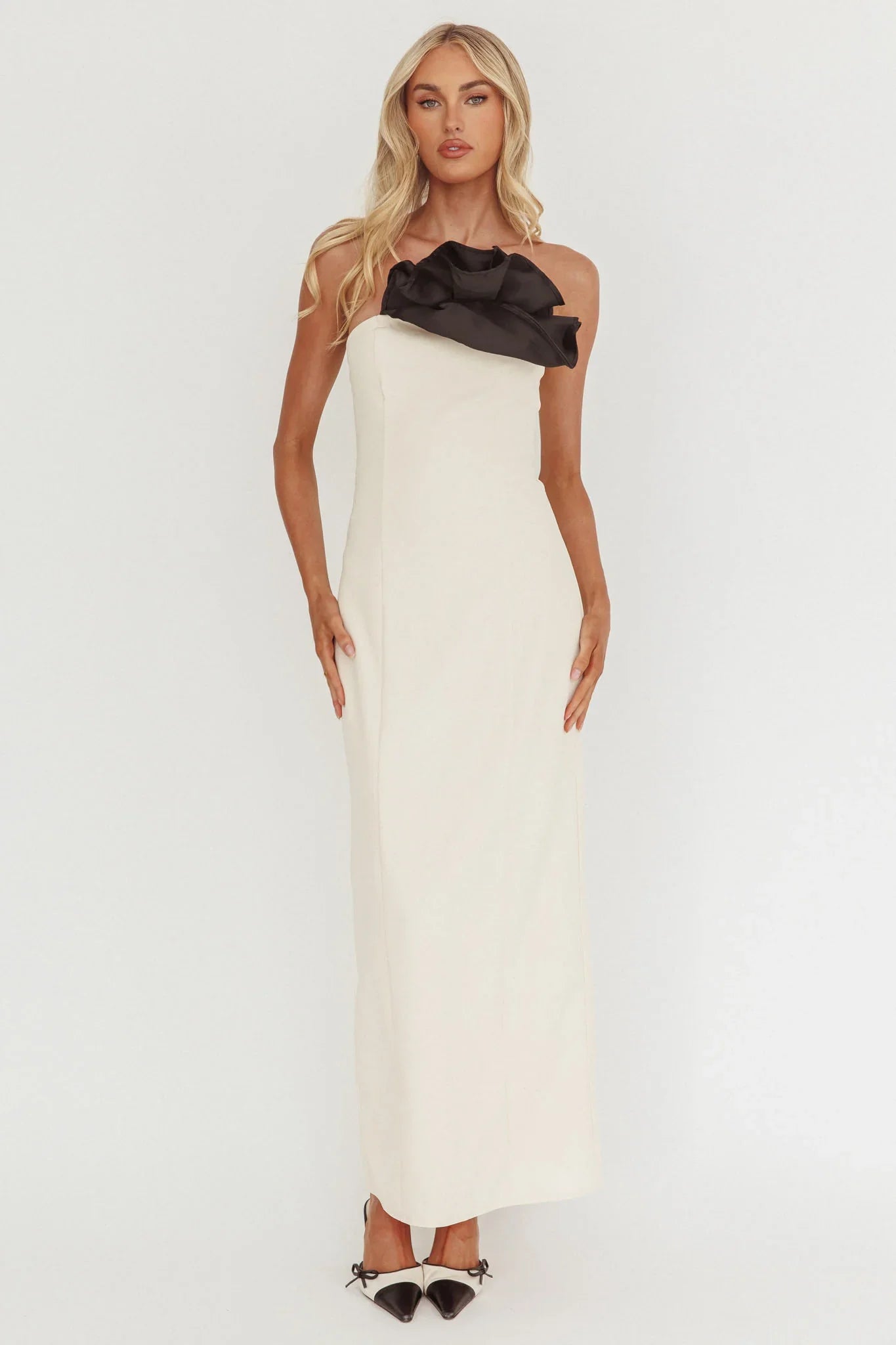 Steal the show with our pretty Lonnie maxi dress. Featuring a ruffle decoration in the neckline, it's perfect for a birthday celebration or special event. Team it with kitten heels and a purse for a look that's fit for a princess.